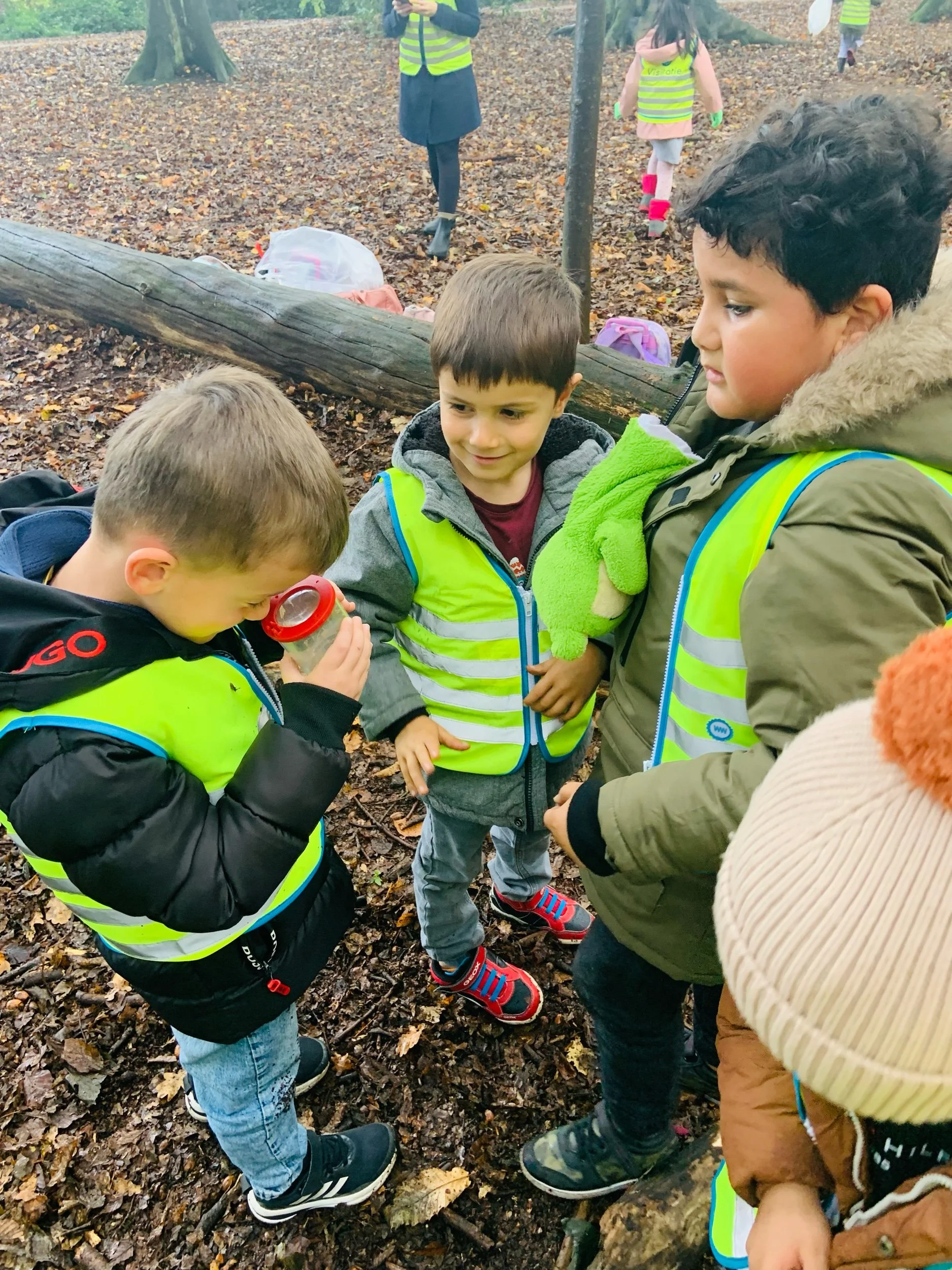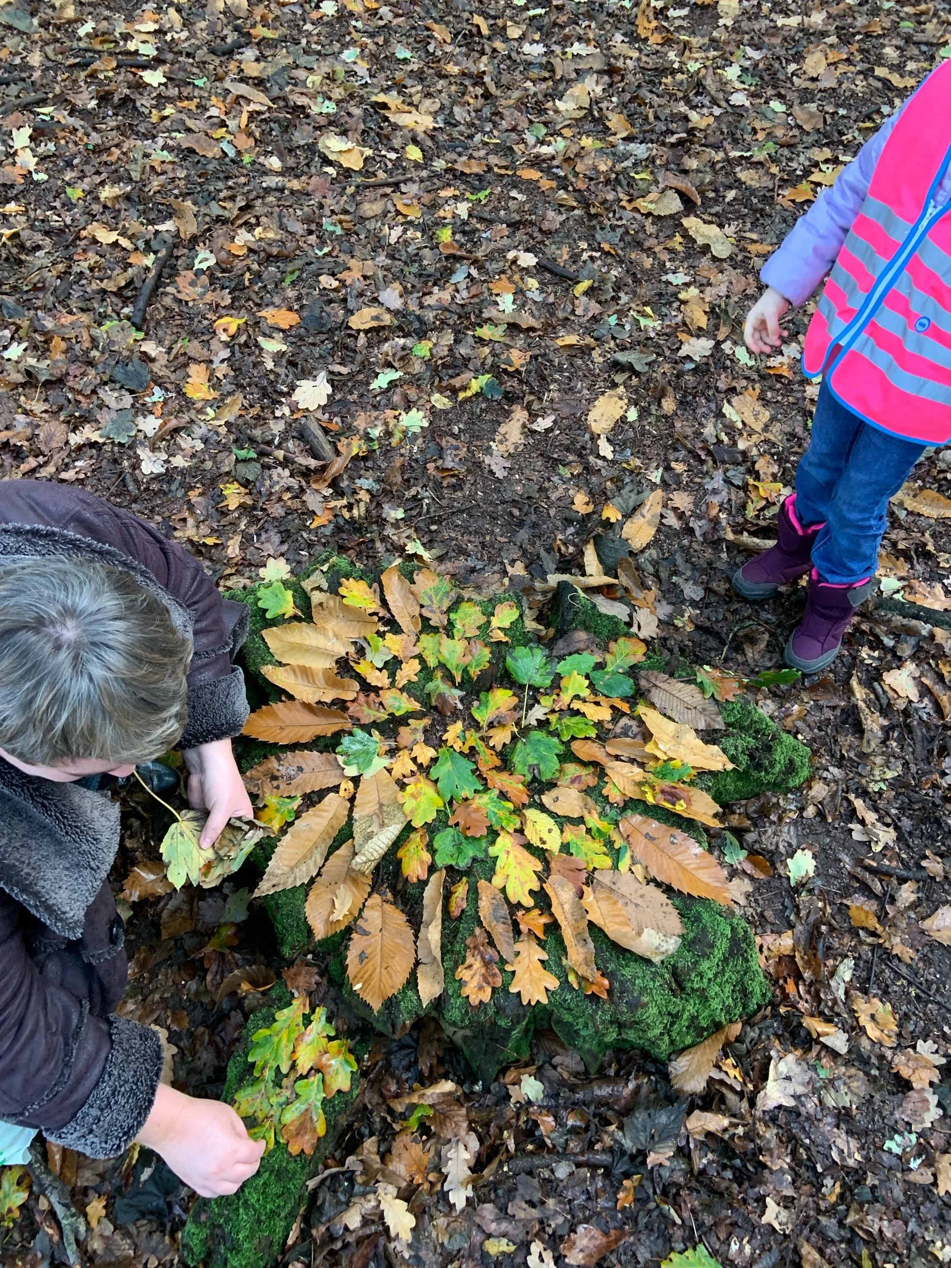 Op vrijdag gingen we met de kikkers en de kangoeroes naar het bos (wandelbos Slotendries). We konden heel wat paddenstoelen bewonderen, kriebeldiertjes bestuderen en herfstschatten verzamelen. We maakten ook herfstige kronen en land-art zoals kunstenaar Andy Goldsworthy.