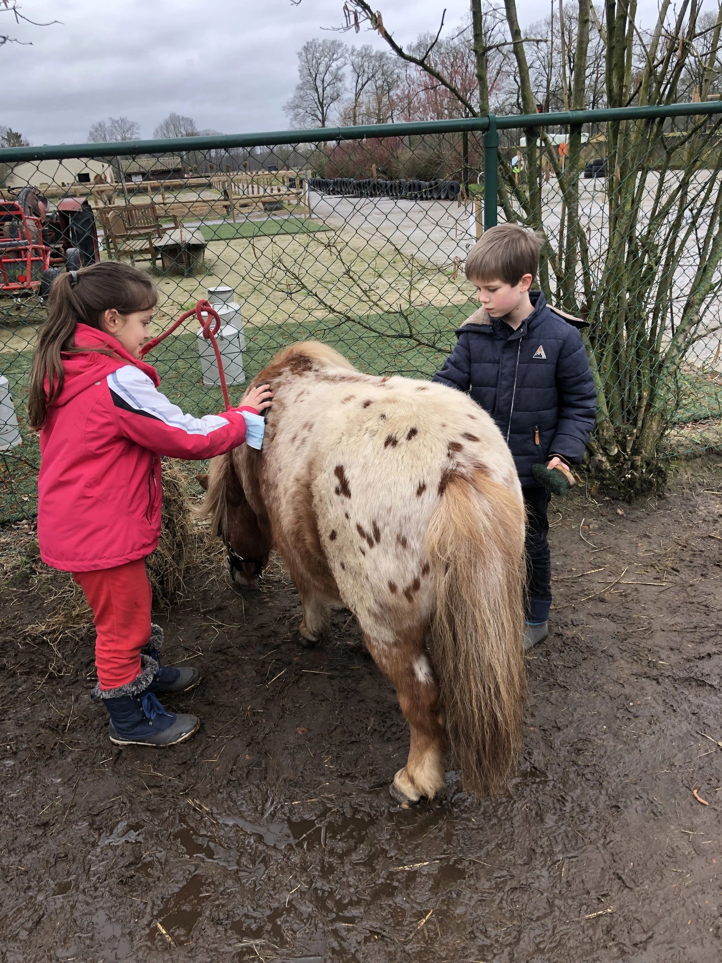 De boer en de boerin verwelkomden ons en gaven ons een rondleiding op de boerderij. Hierna mochten we al van een activiteit genieten: dierenmanieren of dierenverzorging. Meester Pieter speelde ook enkele fijne spelletjes met ons. Aan het einde van de dag deden we nog een leuke spelletjescarrousel!