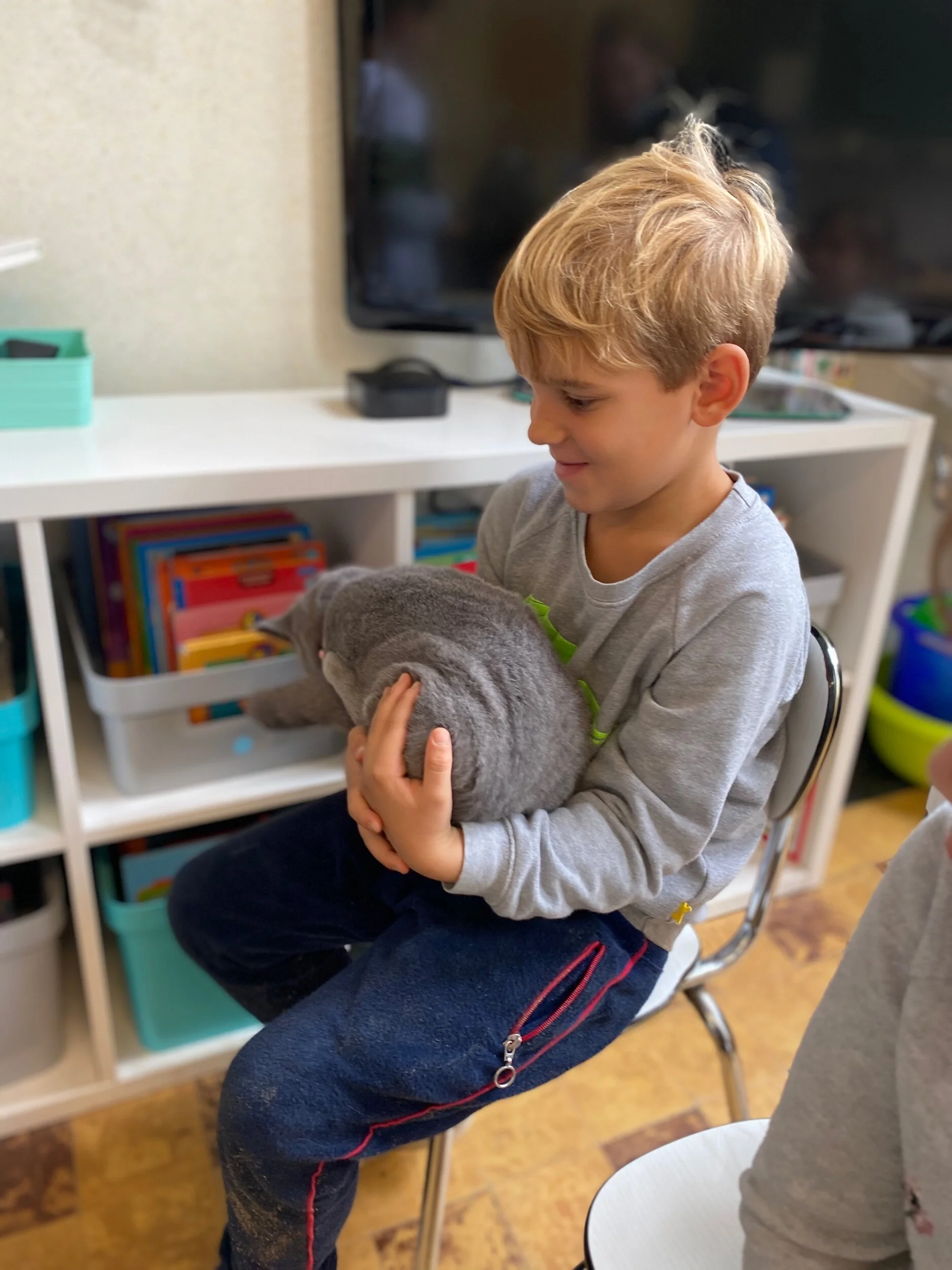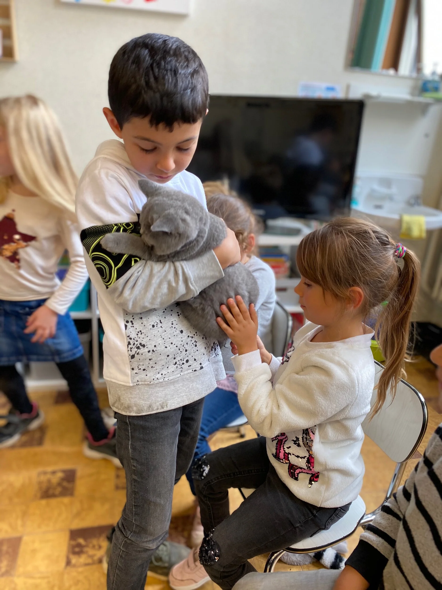 We leren over dieren in ons huis en in de tuin. Mahmud bracht zijn poes ‘Boncuk’ mee naar de klas. Het was super tof!