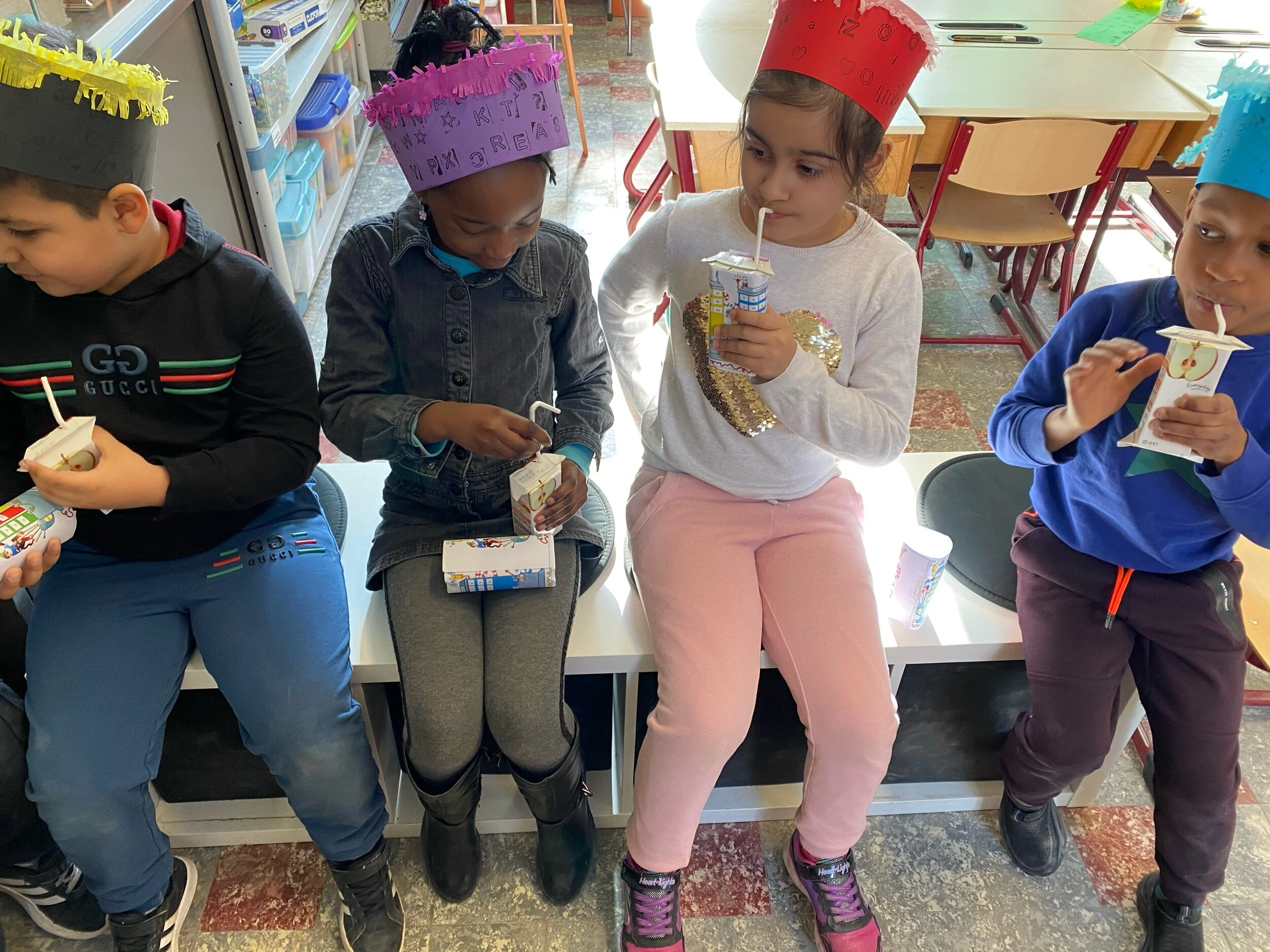 1A kent nu alle letters en vierde daarom vrijdag het letterfeest. We deden een letterzoekspel, dronken een lettersapje en aten letterkoekjes. We genoten van een fijn en gezellig feest!
