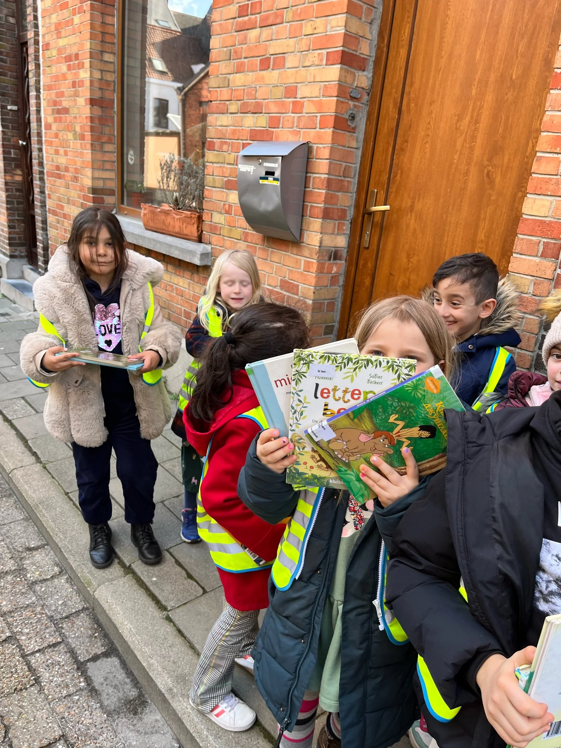 Ons thema bos zijn we gestart met boekjes uit de bib. We leenden opzoekboeken, prentenboeken en leesboeken rond het thema lente, bos en zintuigen.