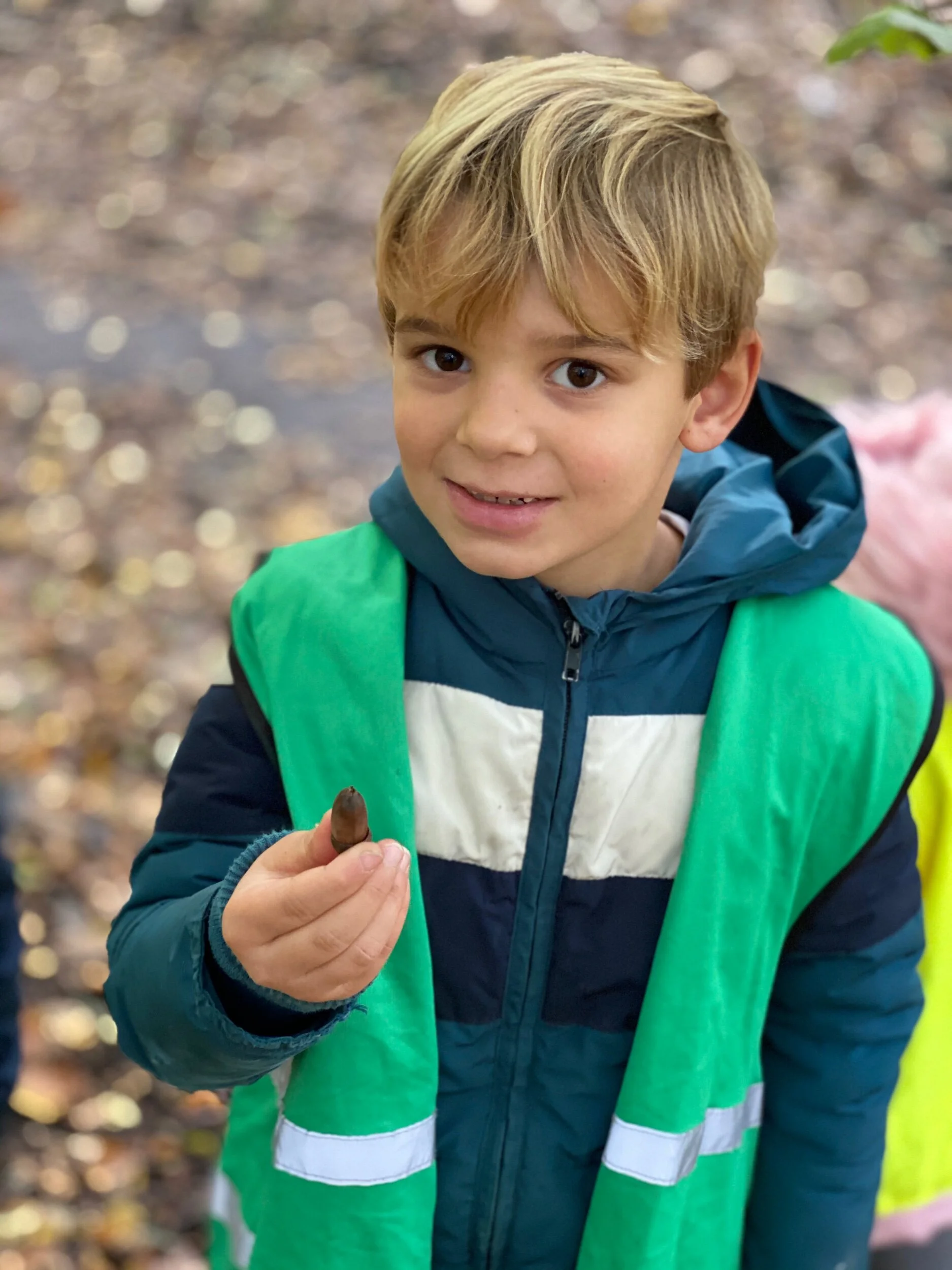 Vandaag was het een prachtige herfstdag, ideaal om naar het bos te gaan! We maakten een mooie wandeling in het bos en vonden heel wat diertjes! We hebben ook het nieuwe woordje ‘bos' geleerd. We zochten naar verschillende herfstvruchten en maakten samen een kamp. Erna mochten we even spelen op de speeltuin en genoten we van de frisse buitenlucht! Het was een ideale afsluiter van de eerste weken is het eerste leerjaar. En dan nu… herfstvakantie!