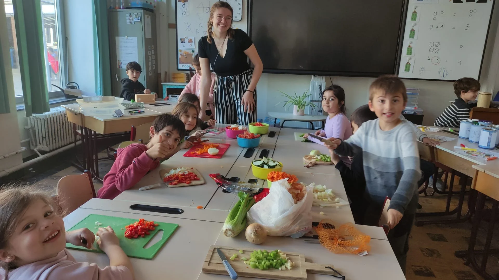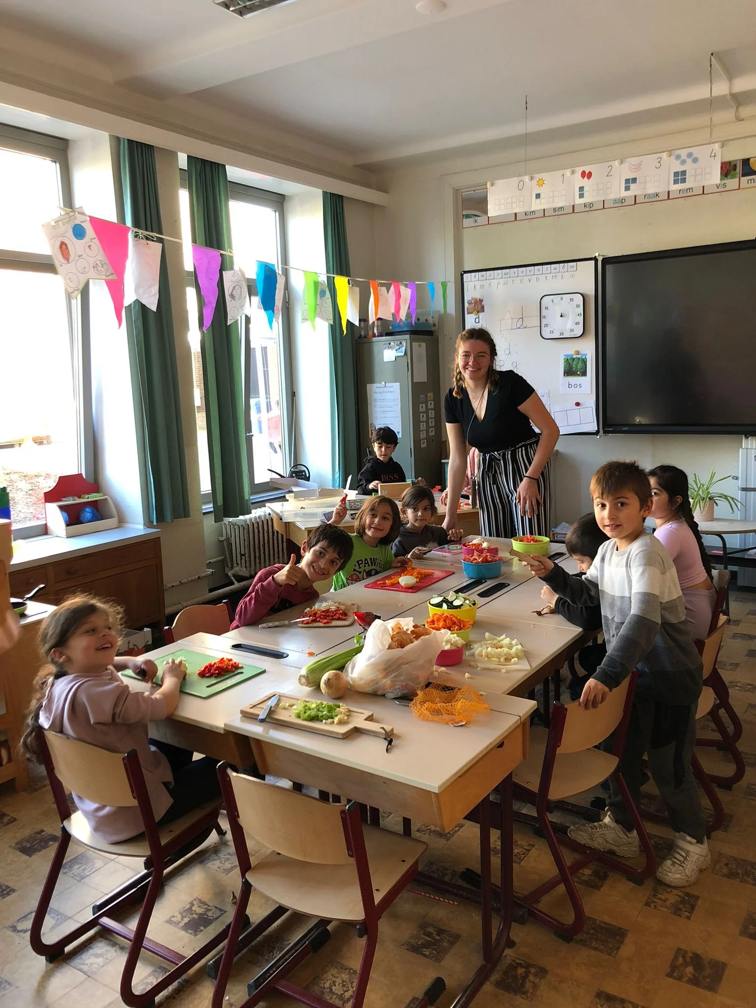 We gingen met de bus naar de Vrijdagsmarkt waar we allerlei kraampjes leerden kennen. We kochten gezonde groentjes en mochten zelfs eens proeven van het fruit en aperitiefstokjes. In de namiddag maakten we samen heerlijke soep!