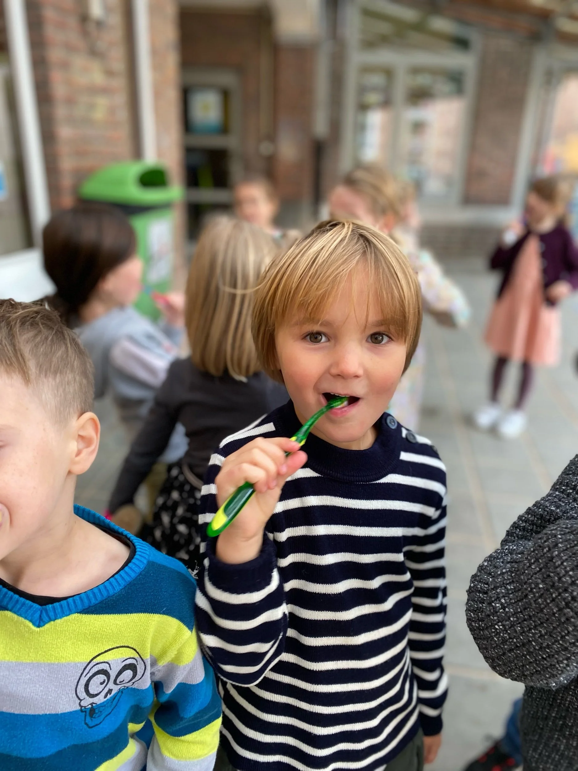 Na het ontbijt hadden we nog een portie beweging in de vorm van ochtendgymnastiek en poetsten we onze tanden om daarna fris naar de klas te trekken.