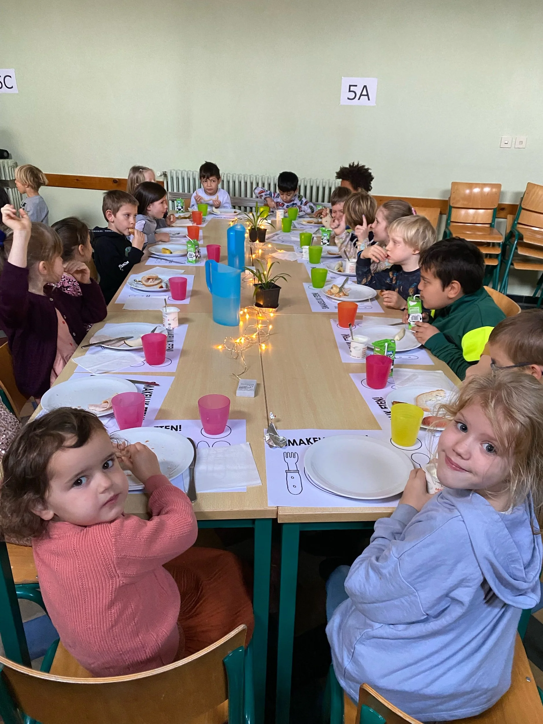 Het eerste leerjaar sloot vandaag het thema βGezond en fit, een megahit!β af met een gezond ontbijt. De kinderen genoten van het lekkere eten maar ook van het gezellig samenzijn met de vriendjes en leerkrachten.
