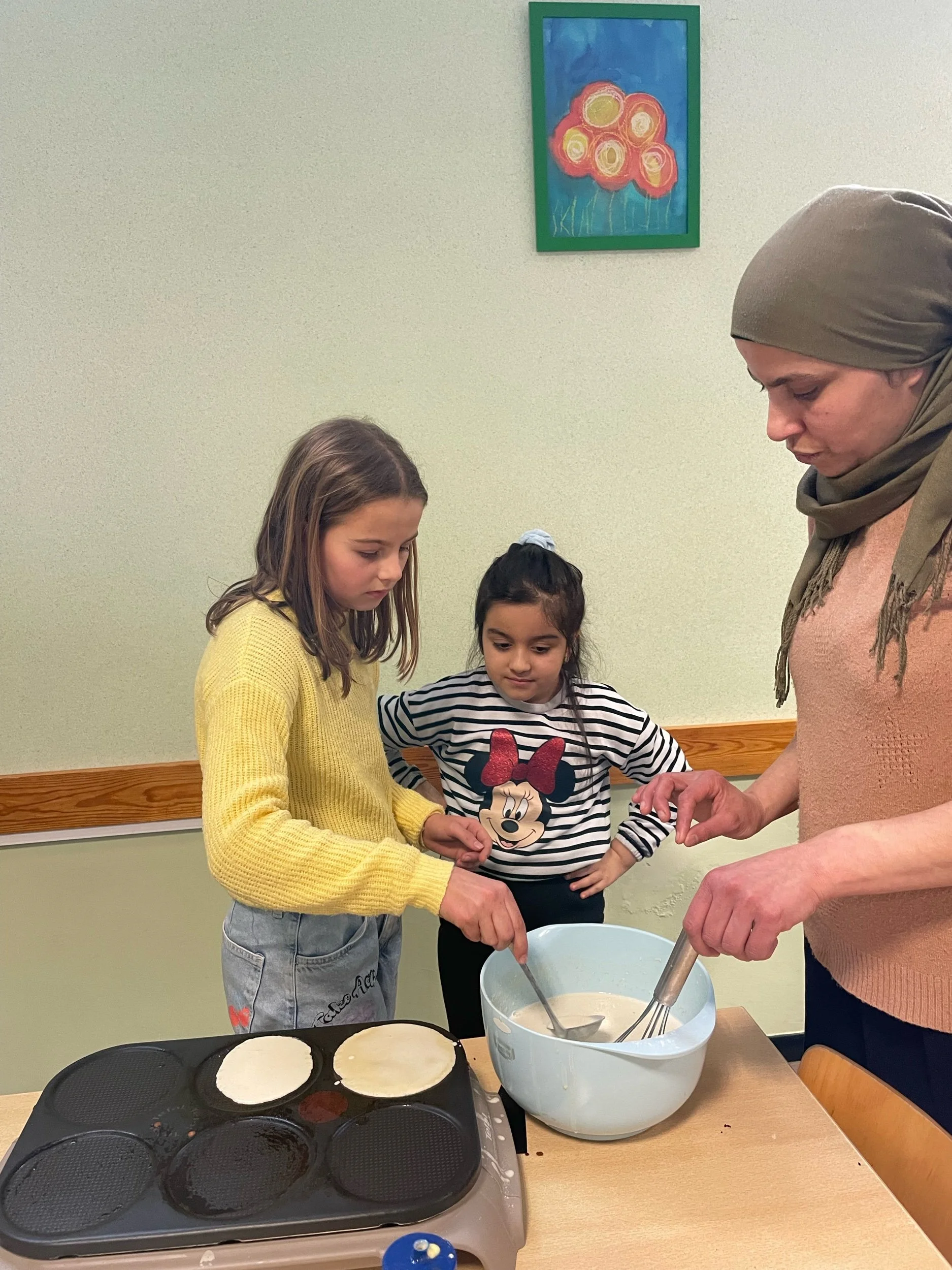 Op 2 februari is het Maria Lichtmis en dat wordt gevierd met pannenkoeken! Samen met onze meters en peters deden we tal van leuke activiteiten. We bakten samen mini-pannenkoekjes, we smulden van onze zelfgemaakte cocktail en knutselden een mooi lichtje. Dank aan de hulpmama’s Maureen en Naima om mee te helpen bakken, knutselen en afmeten!