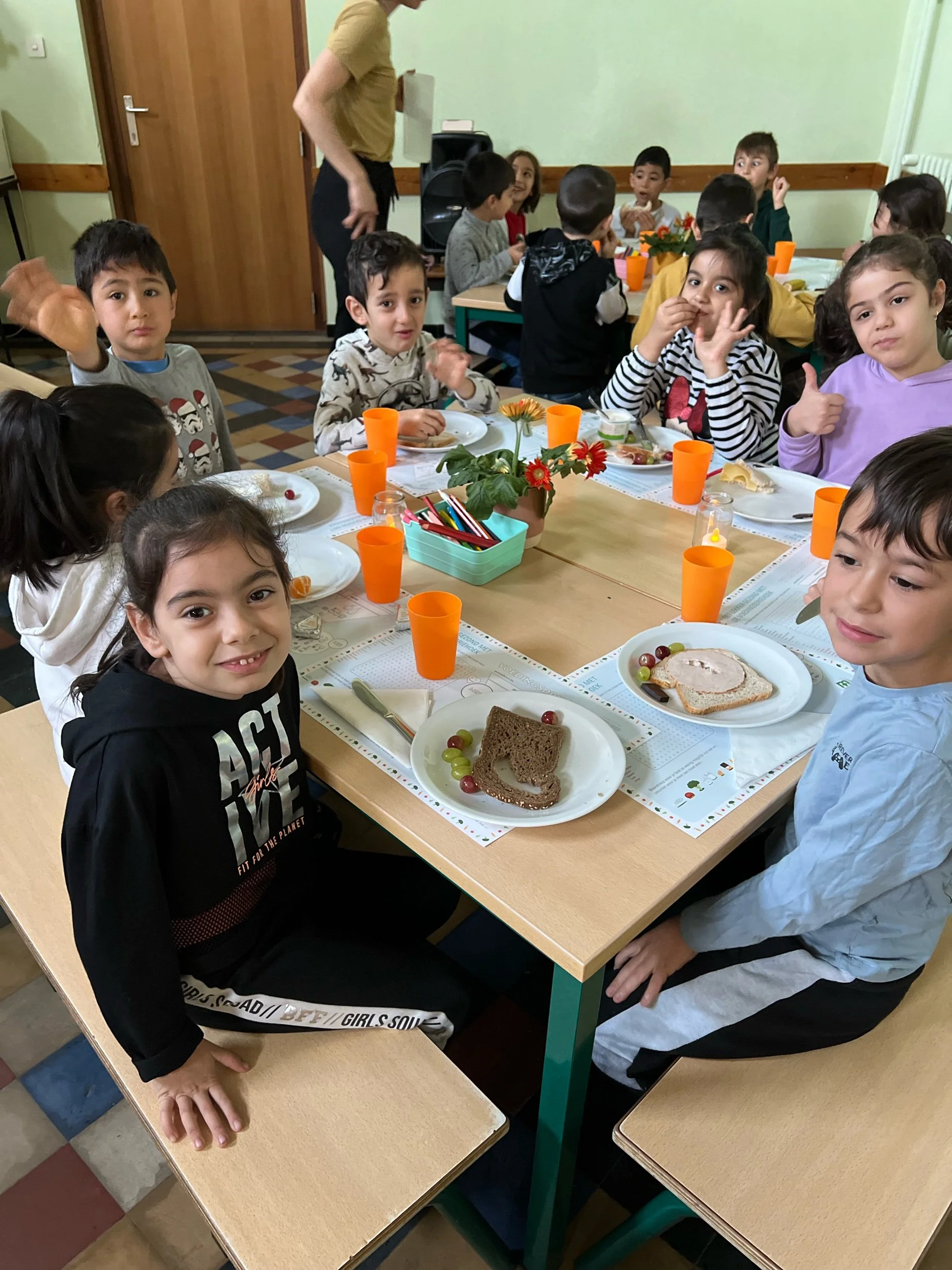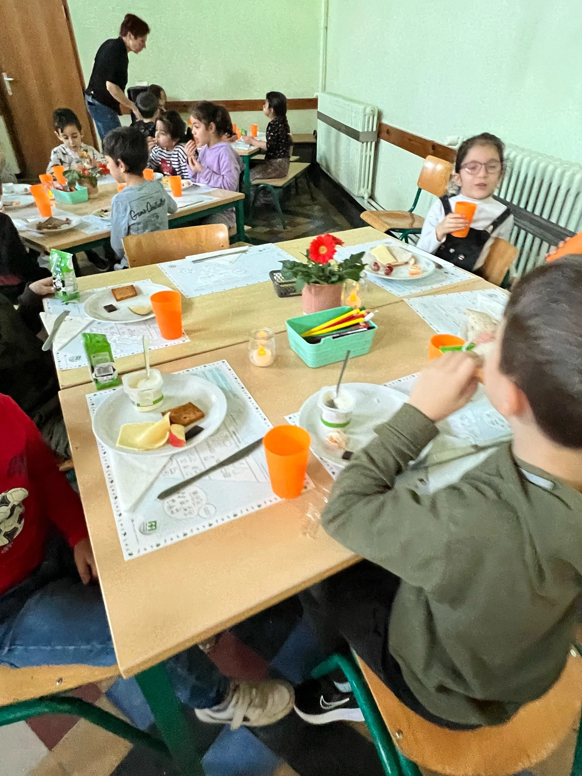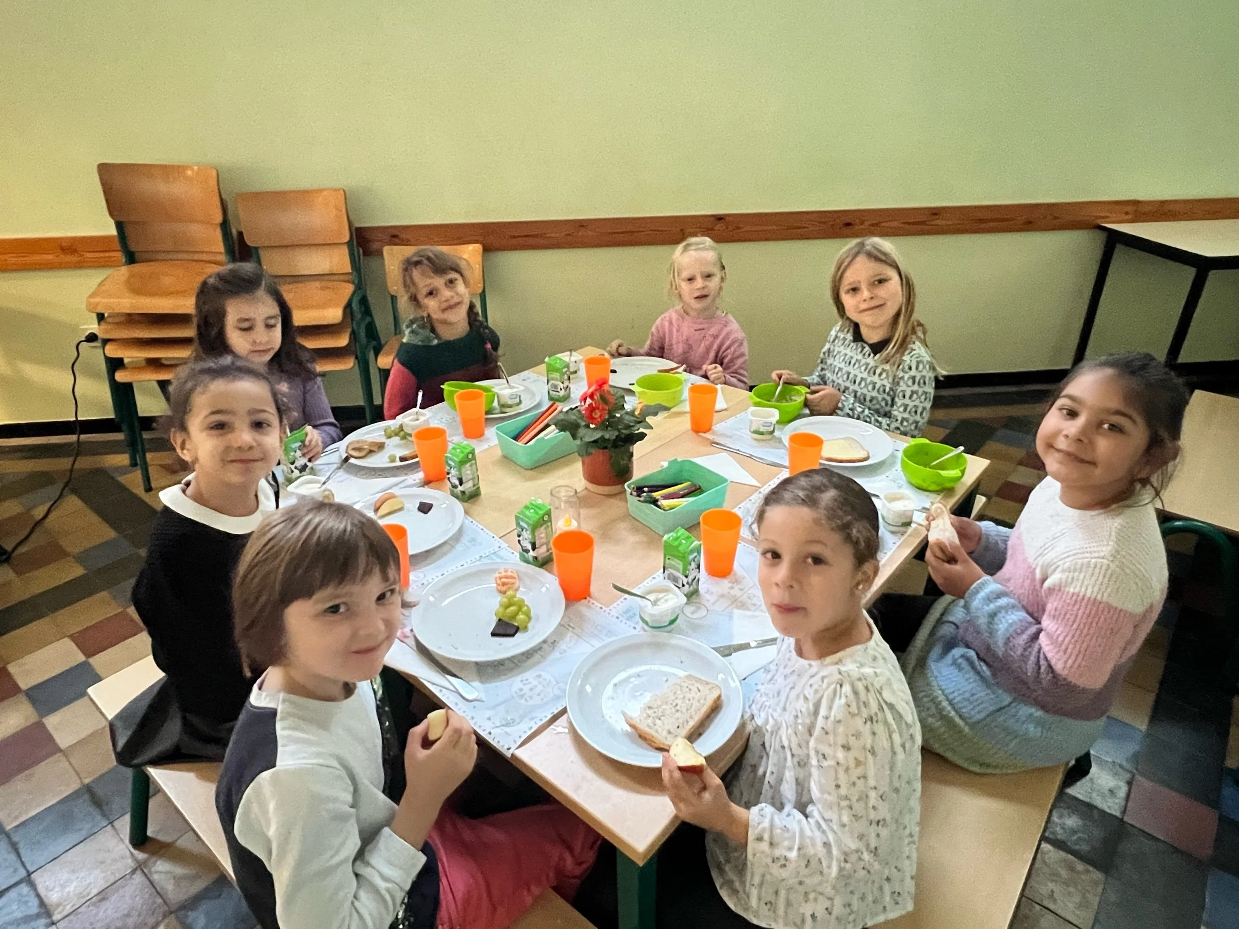 Voor één keer mochten de kinderen met een lege maag naar school komen om samen gezellig te ontbijten. We aten iets uit elke groep van de voedingsdriehoek en kregen op het einde ook een mooie brooddoos van de CM! Samen met juf Rein hebben we ook nog wat ochtendgymnastiek gedaan zodat we de dag fris konden beginnen. Daarna poetsten we ook allemaal samen onze tandjes. Wat een gezonde dag!