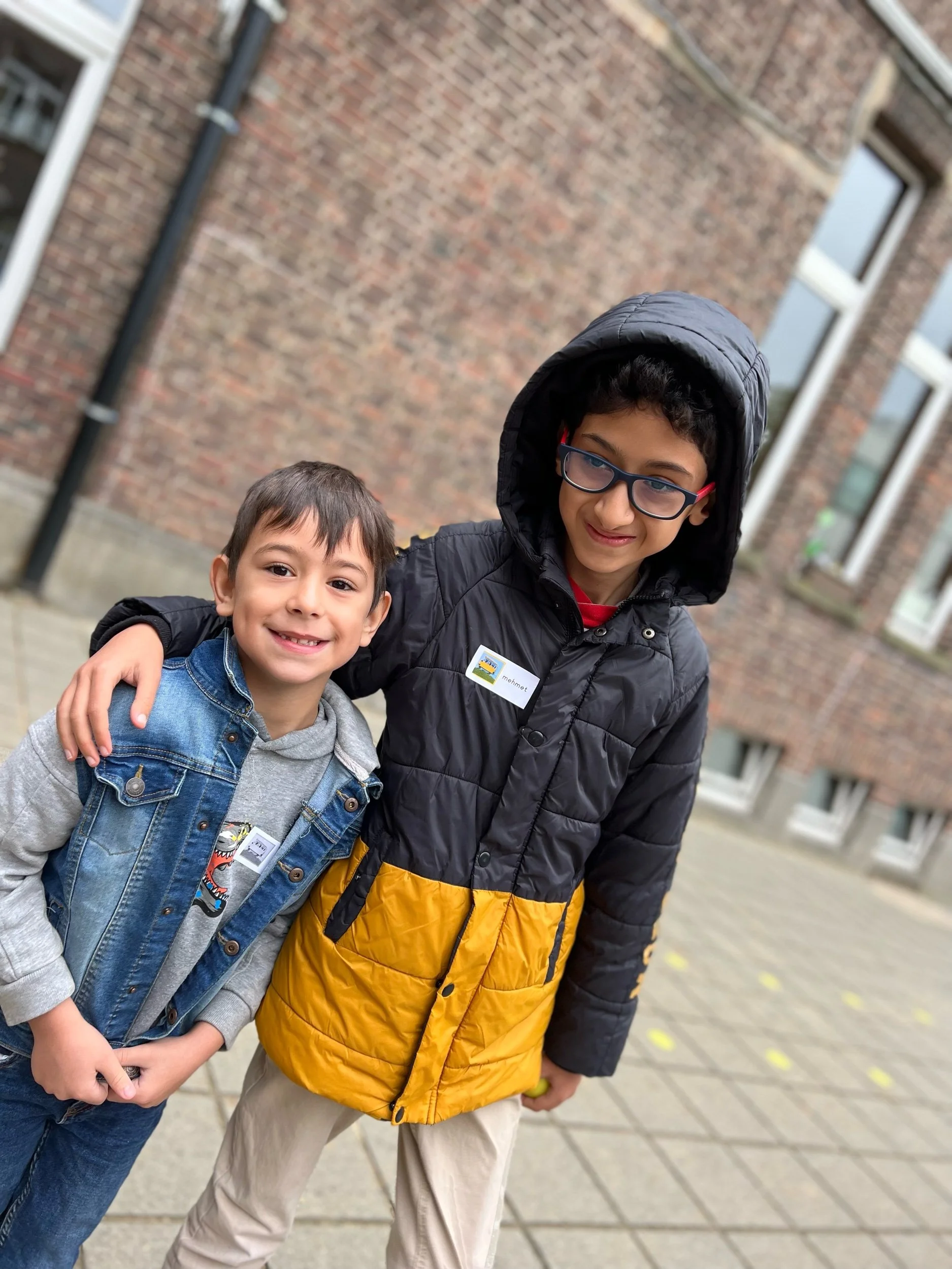 De kinderen van het eerste leerjaar kregen een meter of peter van het zesde leerjaar. We aten gezellig ons fruitje samen op en leerden elkaar beter kennen!!