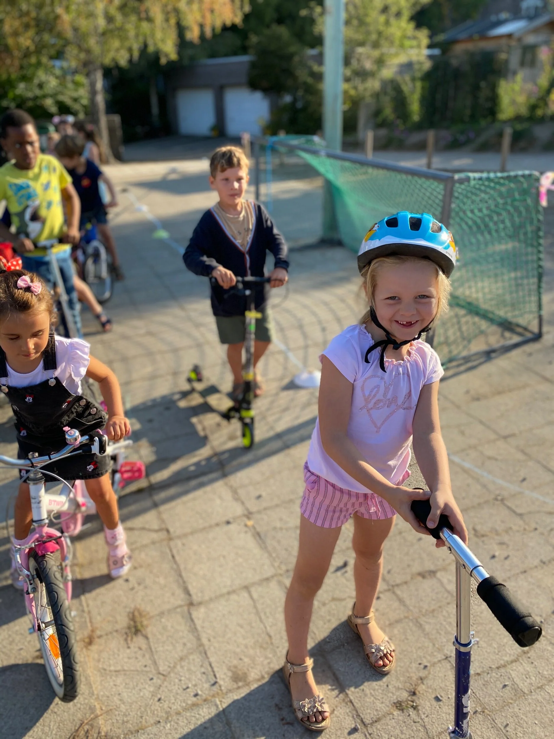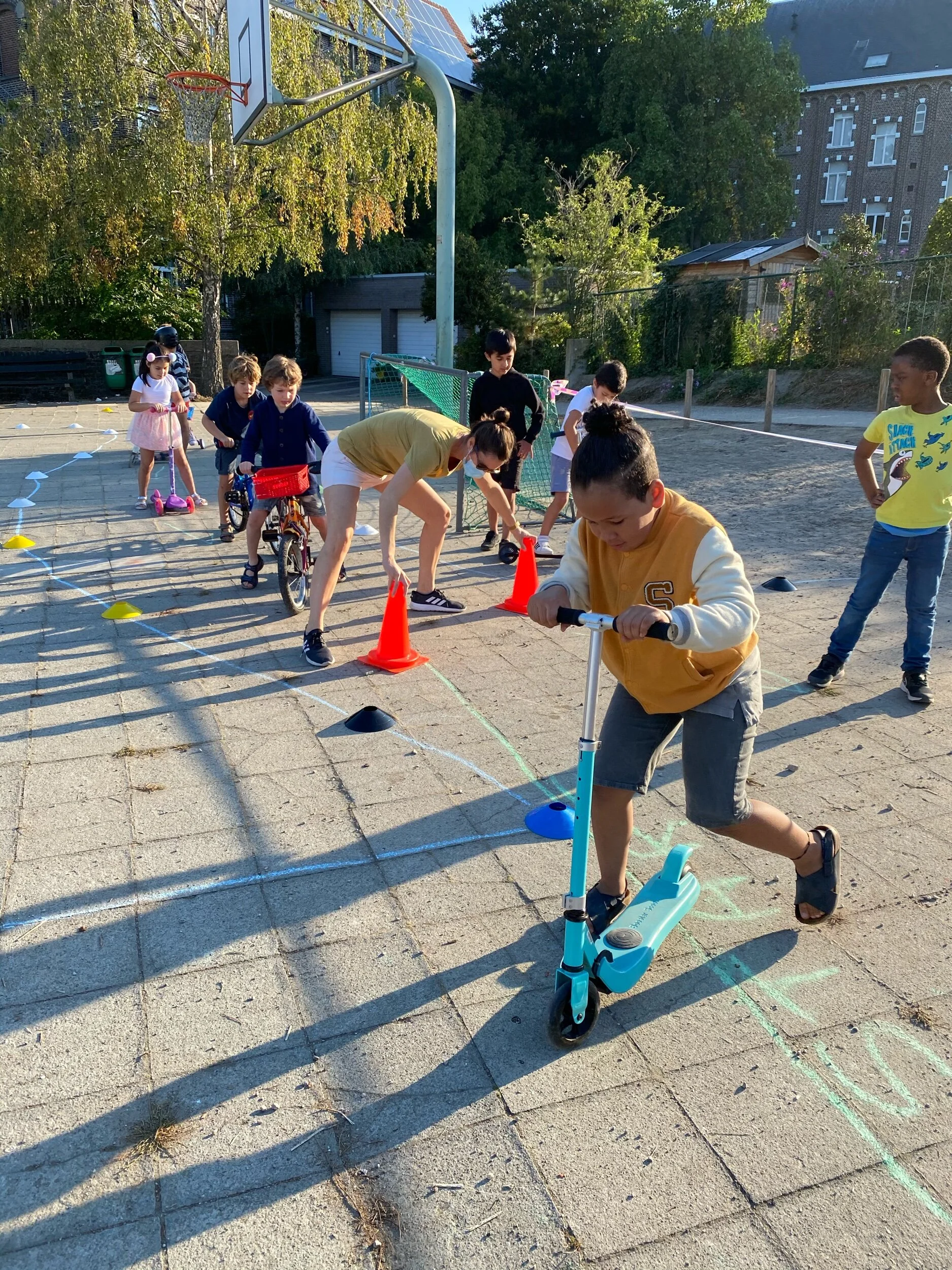 Met de fiets, te voet of met de step naar school. Als beloning mochten we een groot parcours afleggen. Dat was super leuk! Kijk maar mee.