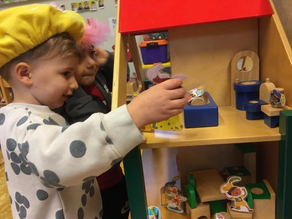 Elke dag opnieuw kregen we een doos vol verrassingen waarmee we konden spelen. Mini-doosjes om op te vullen, grote dozen om in te kruipen, eierdozen om mee te bouwen, geluidendozen, geurdozen, dozen met verkleedkleren van Sint en Piet,…We kregen een grote variatie aan dozen…