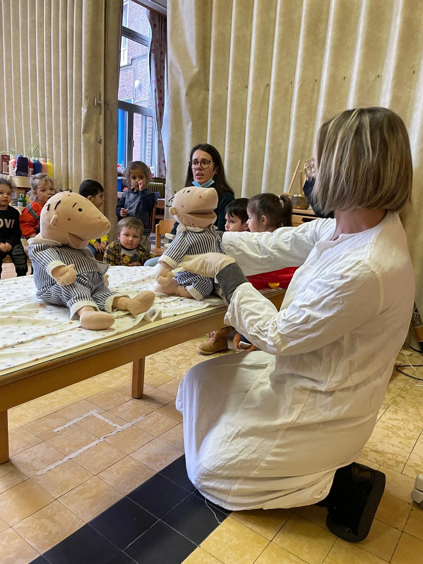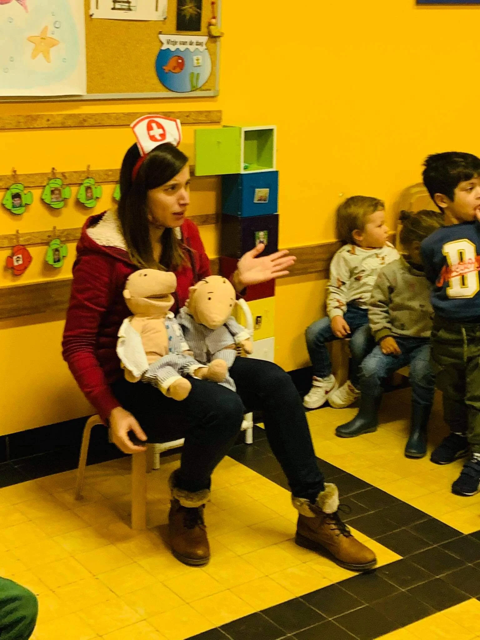 Gelukkig kregen we bezoek van dokter Karolien! Van haar kregen we de nodige tips en ook een zalfje om Jules en Joppe terug beter te maken! Gelukkig zijn ze nu door de goede zorgen van alle dokters uit de vissen-en uiltjesklas terug helemaal genezen!