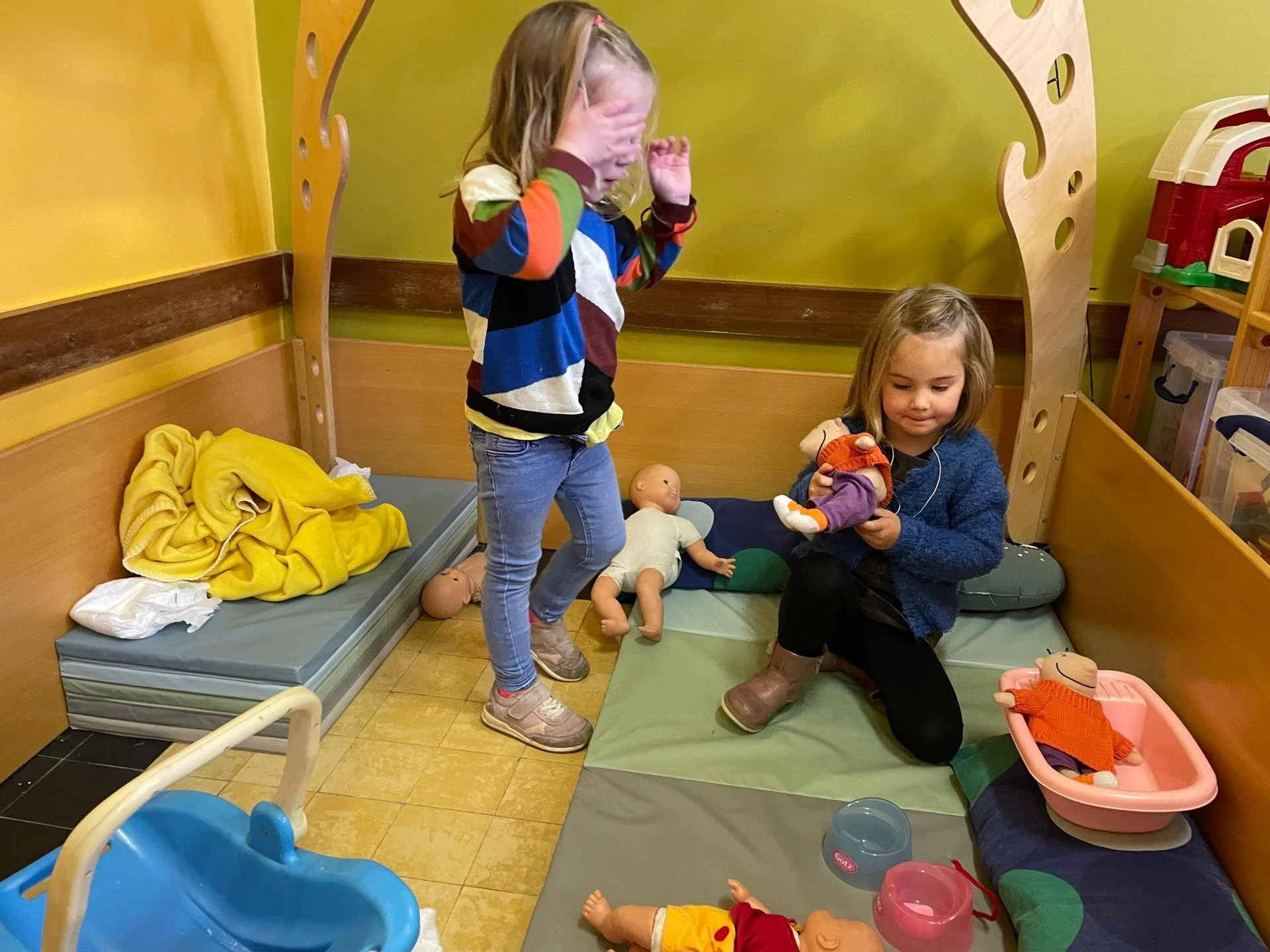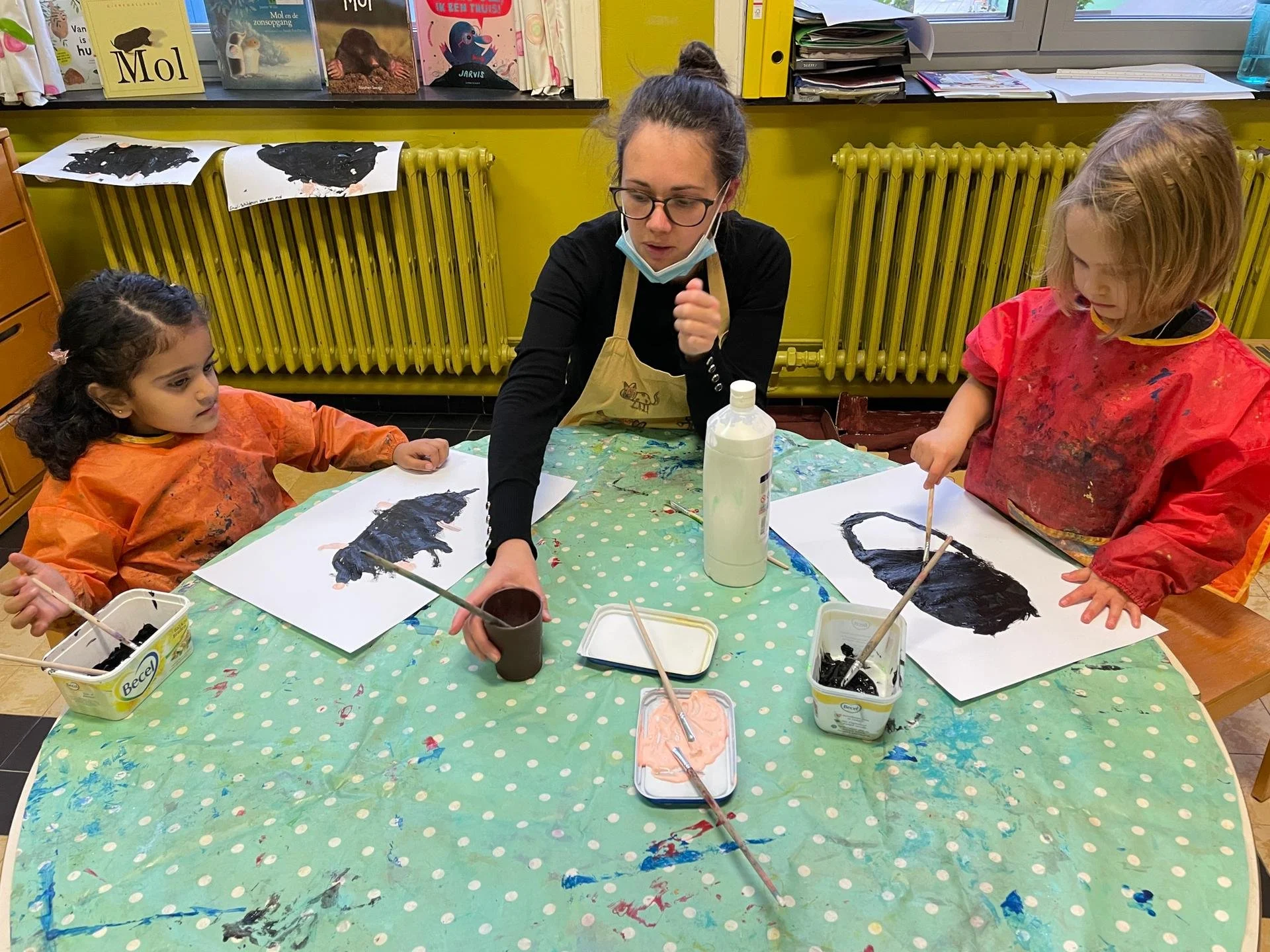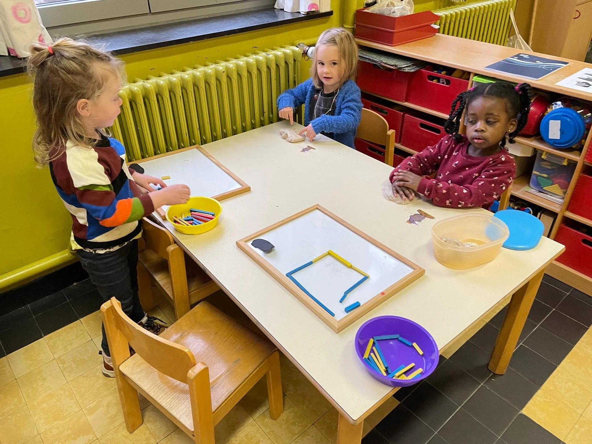 De kinderen vonden het een heel grappig verhaal en gingen nadien enthousiast aan de slag met de verteltafel.
