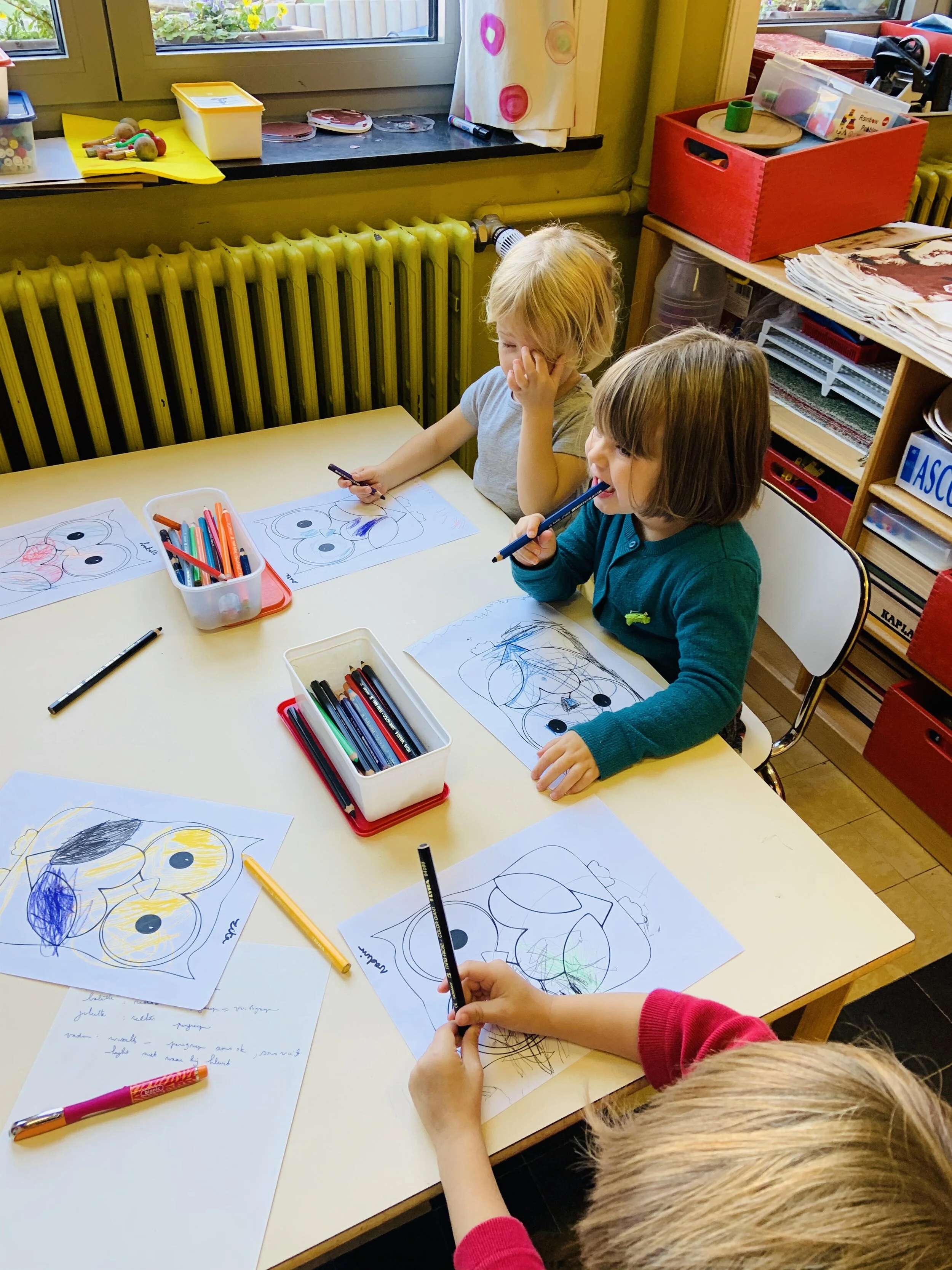 Na 2 weken in de klas zijn we het schoolse ritme al goed gewoon. De eerste kleuterklassers waren na dag 1 al terug helemaal thuis in de uiltjesklas, maar onze nieuwe uiltjes vinden nu ook al goed de weg in onze klas. Tijdens deze eerste 2 weken deden we al tal van leuke dingen. We versierden een mooie tas om onze knutselwerkjes mee naar huis te nemen dit schooljaar en maakten een sleutelhanger, we schilderden en knutselden uiltjes. We luisterden naar verhalen en speelden spelletjes in de kring. We zongen leuke liedjes en knutselden een mooie boom voor onze godsdiensthoek. We vierden Joppe zijn verjaardag en maakten ook al onze verjaardagskronen klaar voor wanneer we jarig zijn. Wanneer het goed weer was, gingen we ook af en toe naar de speeltuin of profiteerden we ervan om te fietsen en te spelen op onze speelplaats. Geniet van de foto’s.