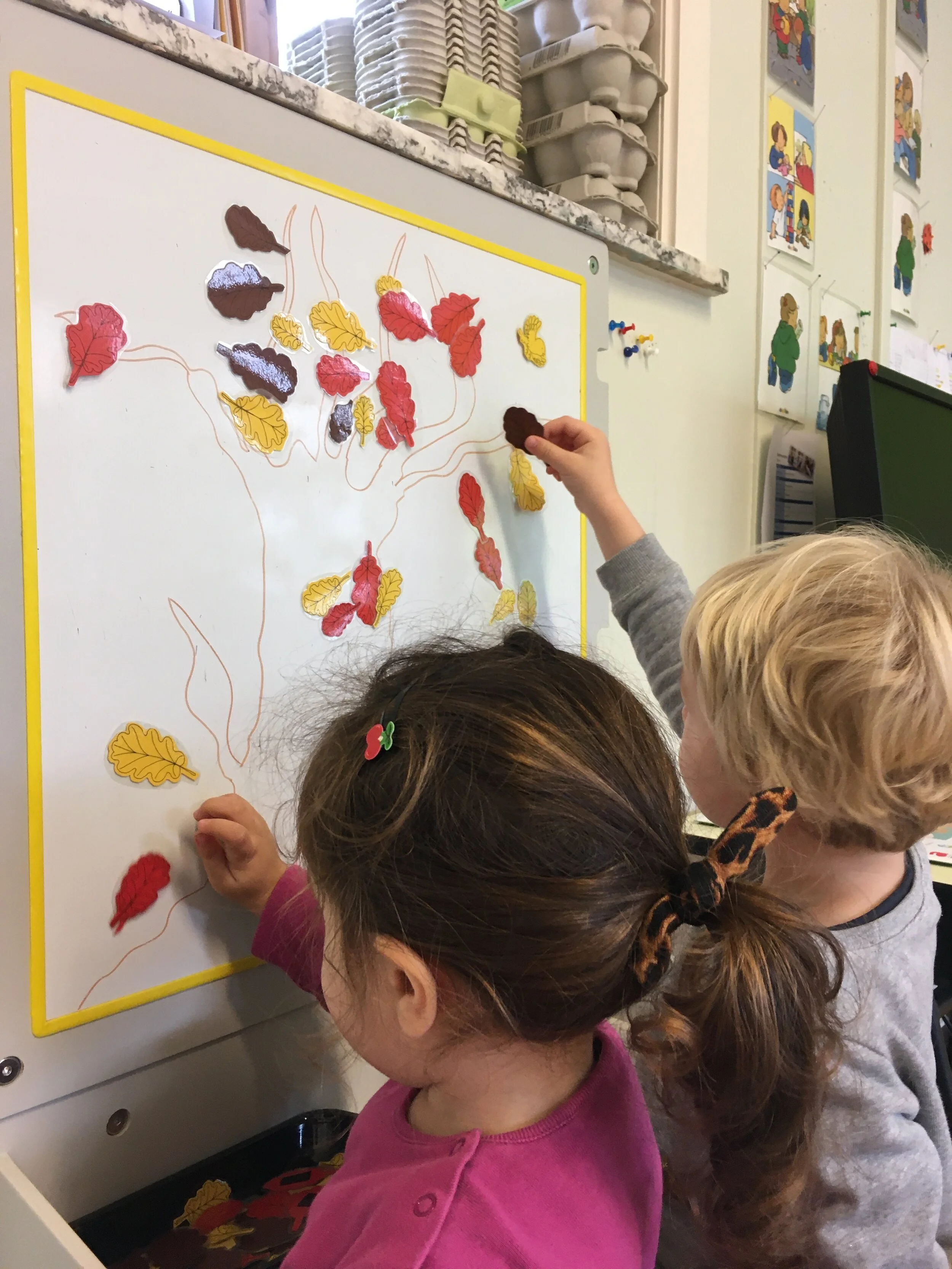 Het was super leuk om de herfst met blaadjes en nootjes écht in de klas te hebben.