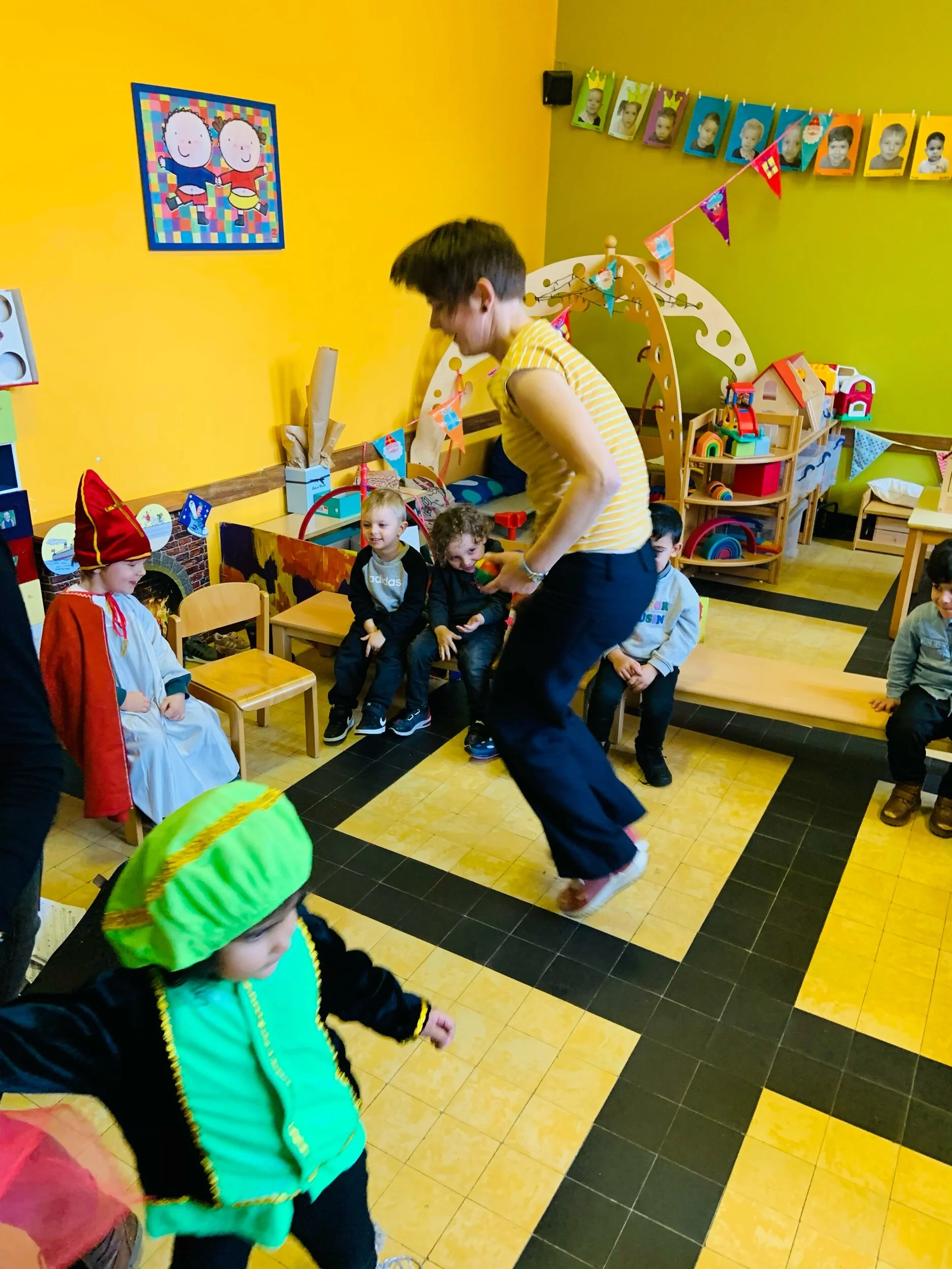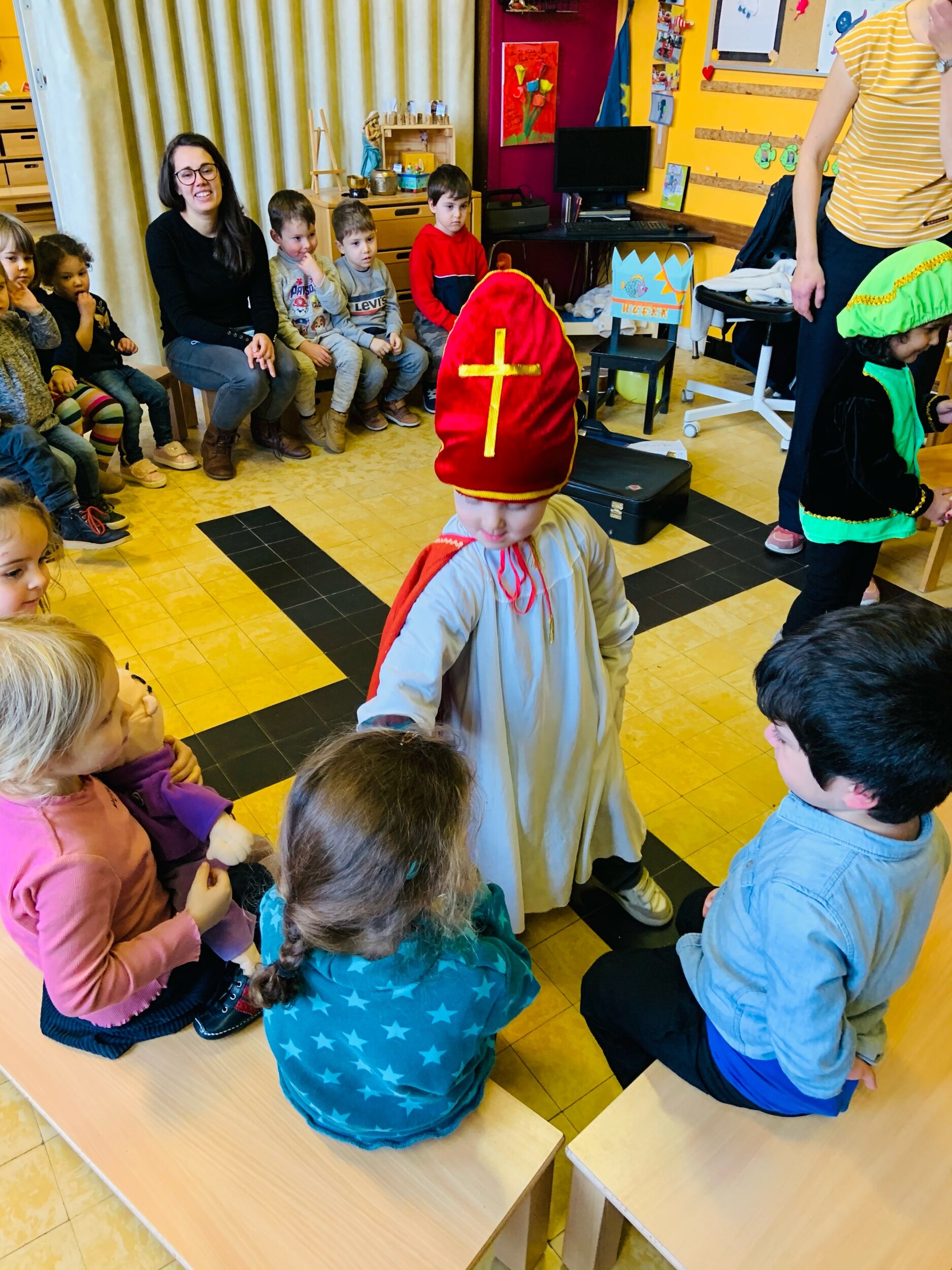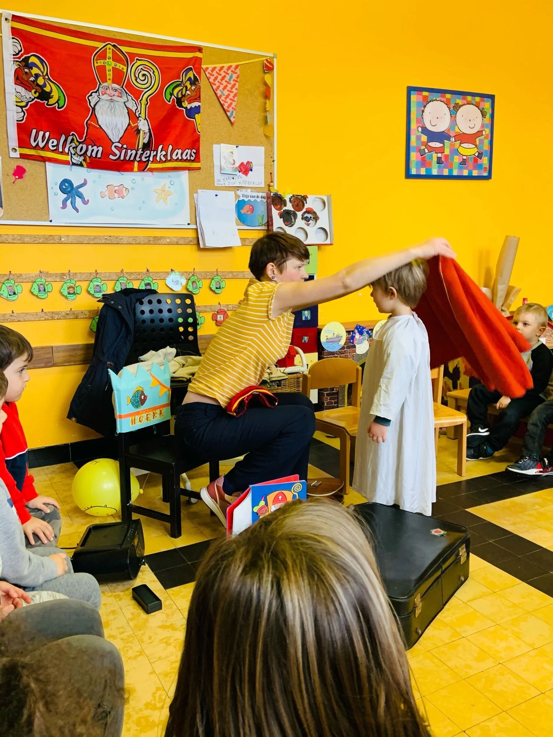 Er werden al meteen kleuters tot Sint en Piet gedoopt, er werd gejongleerd en met doekjes gezwaaid, een kleuter mocht een tekening maken om af te geven aan Sinterklaas,…