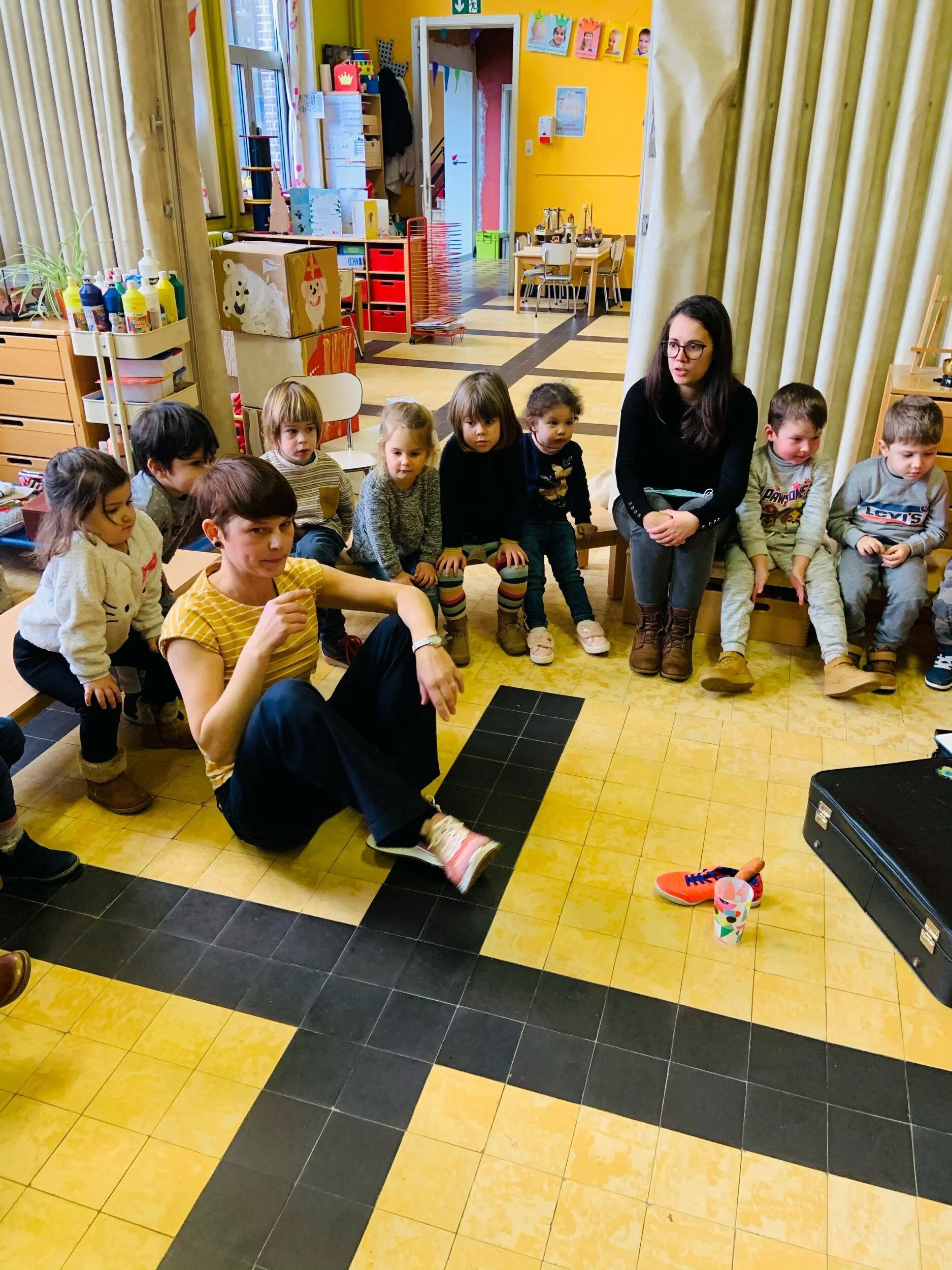 Sportjuf Lien kwam op dinsdag 1 december langs in alle peuter- eerste kleuterklassen om muzisch te vertellen.