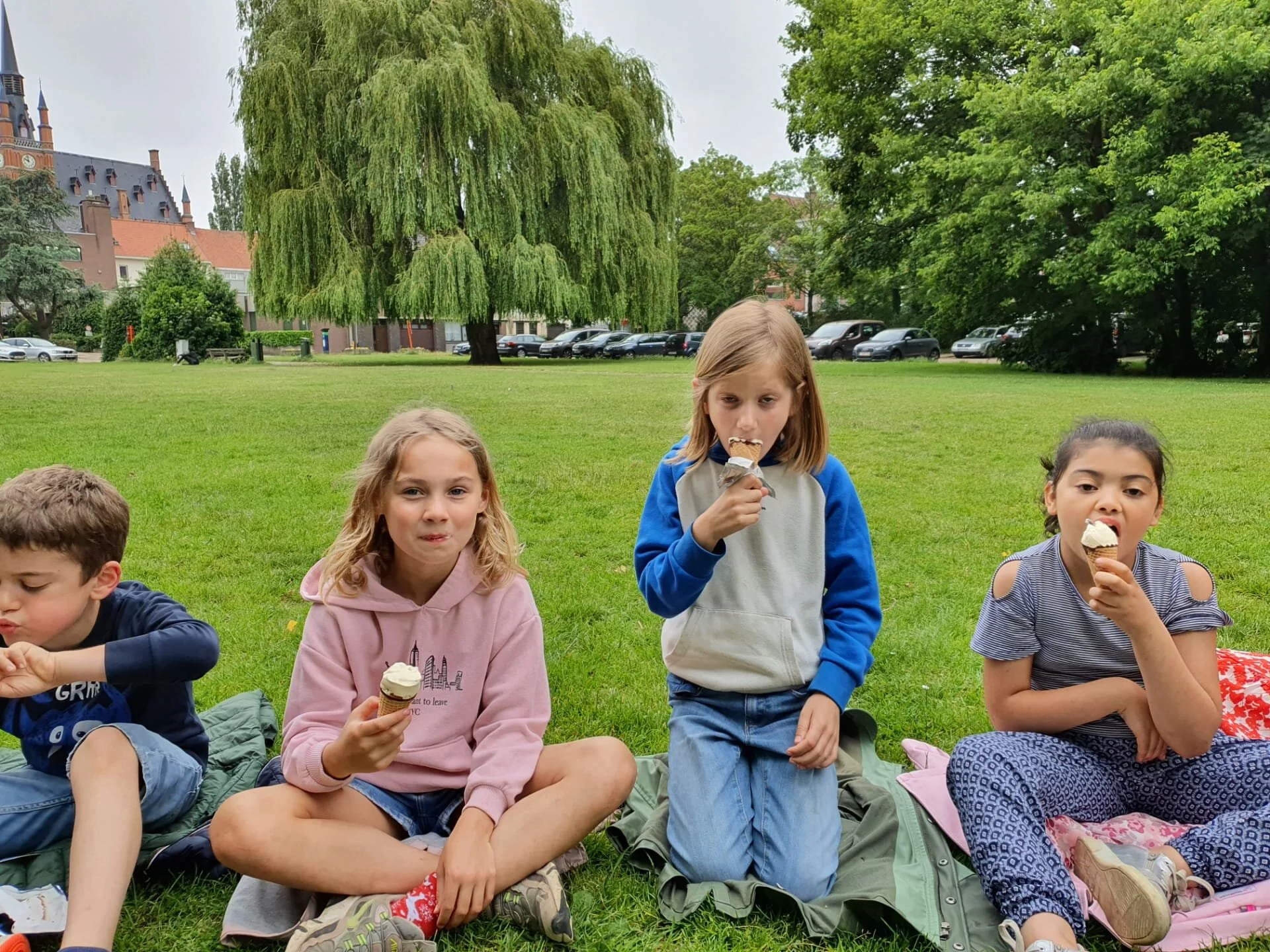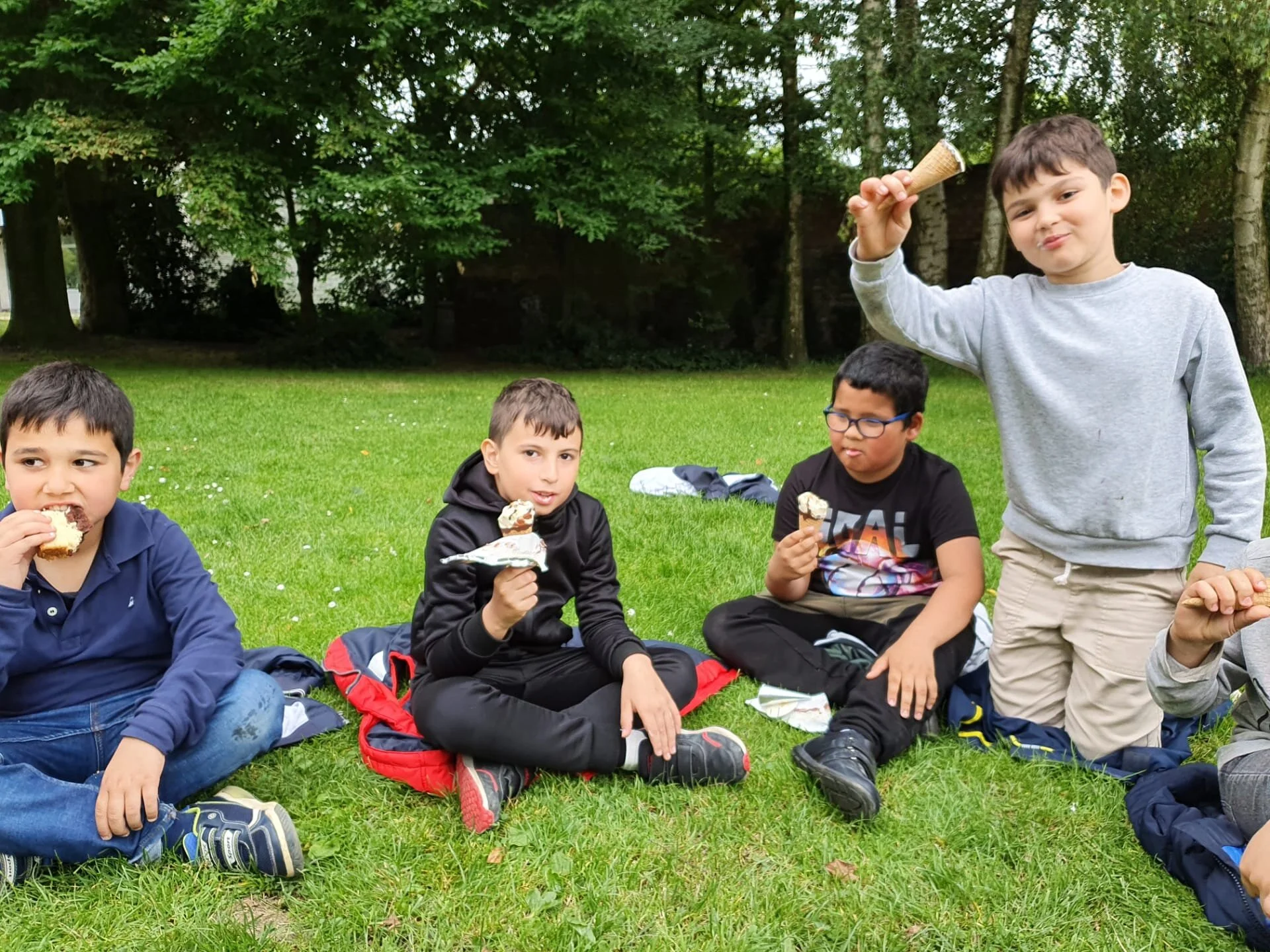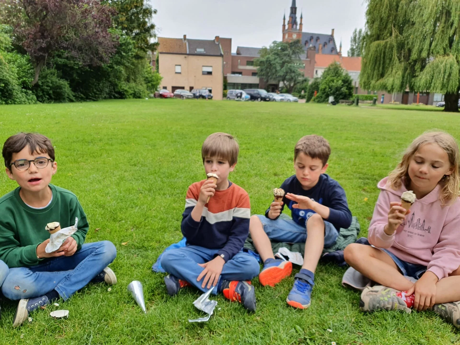 De laatste dagen stonden plezier en genieten voorop in onze planning: een ijsje in het park, een voetbalmatch met de juf, een laatste doorschuif voor spelling met spelletjes, een muzikaal pak, samen terugdenken aan het schooljaar tijdens een slotviering met de klas.