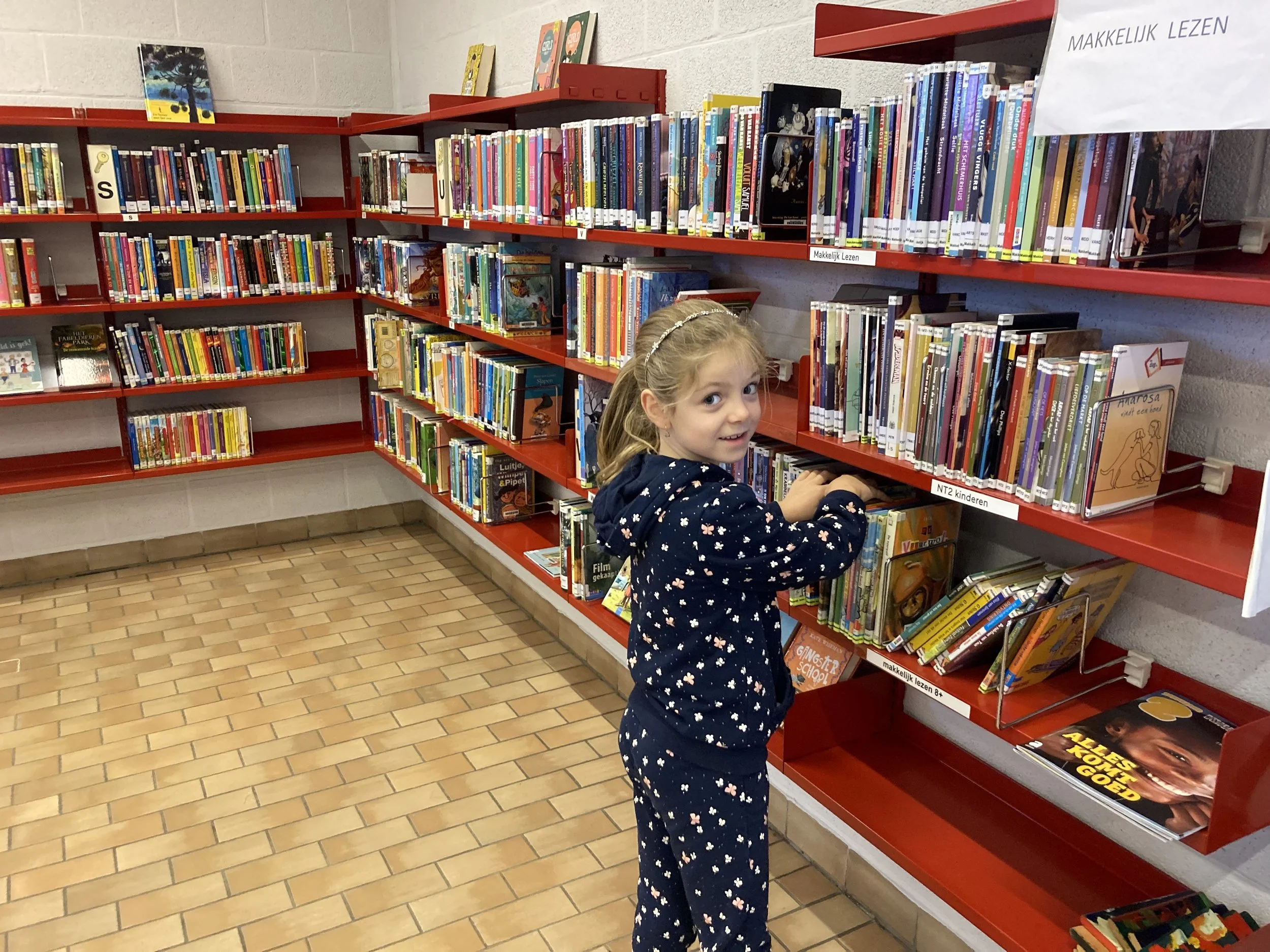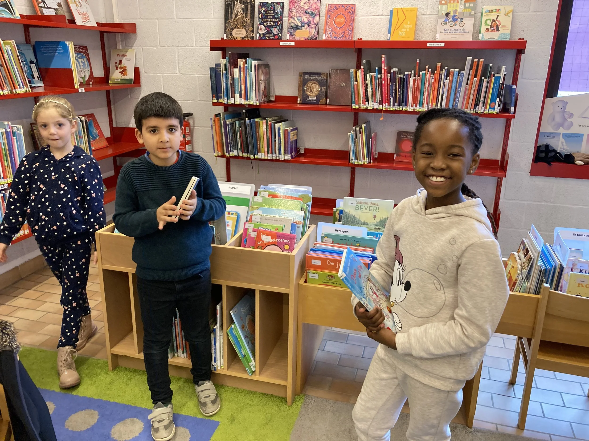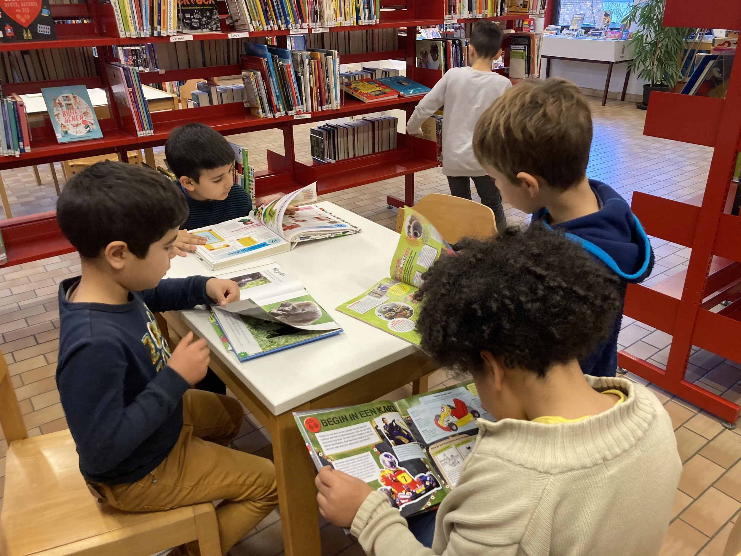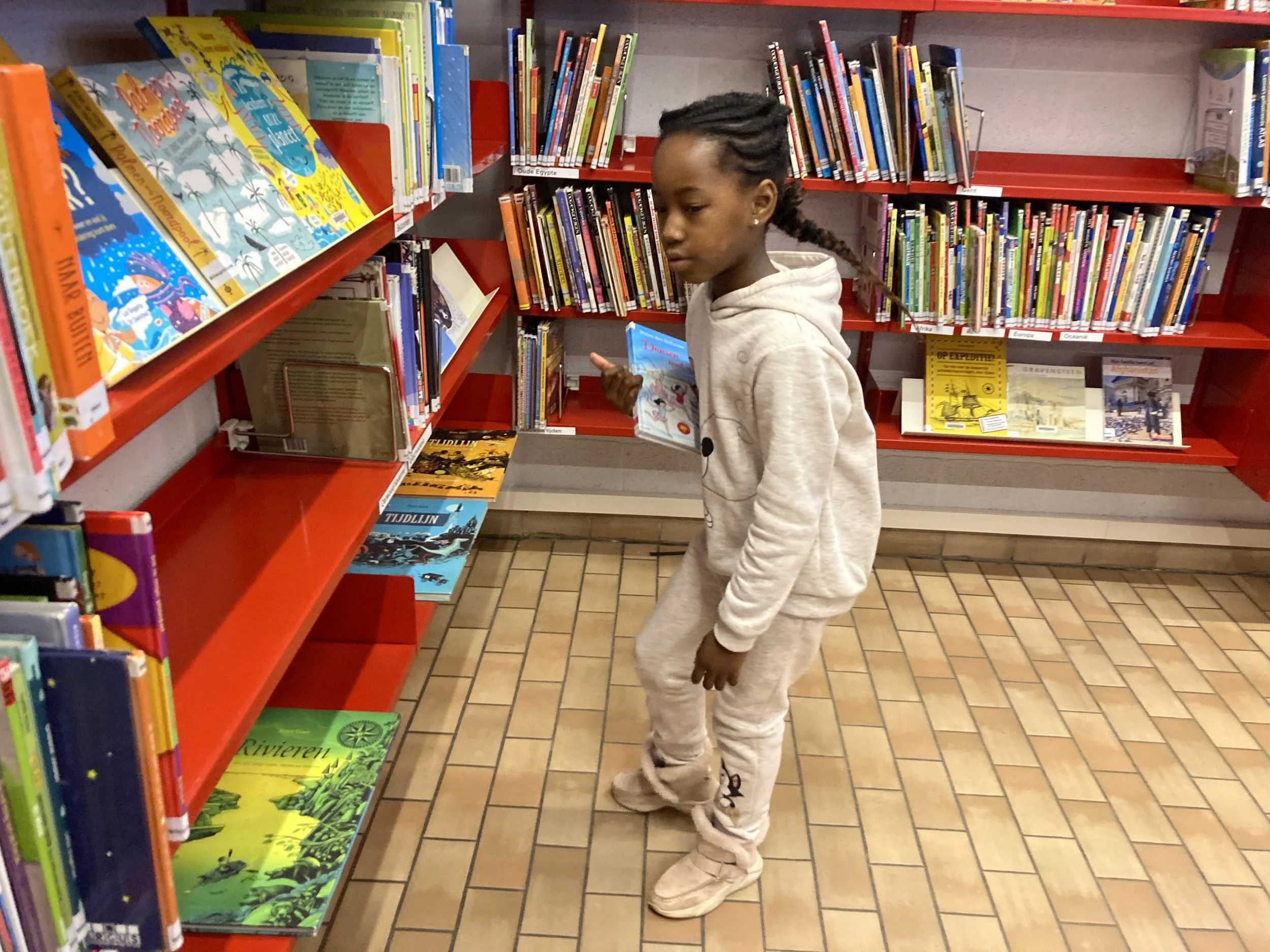 Wij mochten even alle boekenhoeken verkennen in de bibliotheek