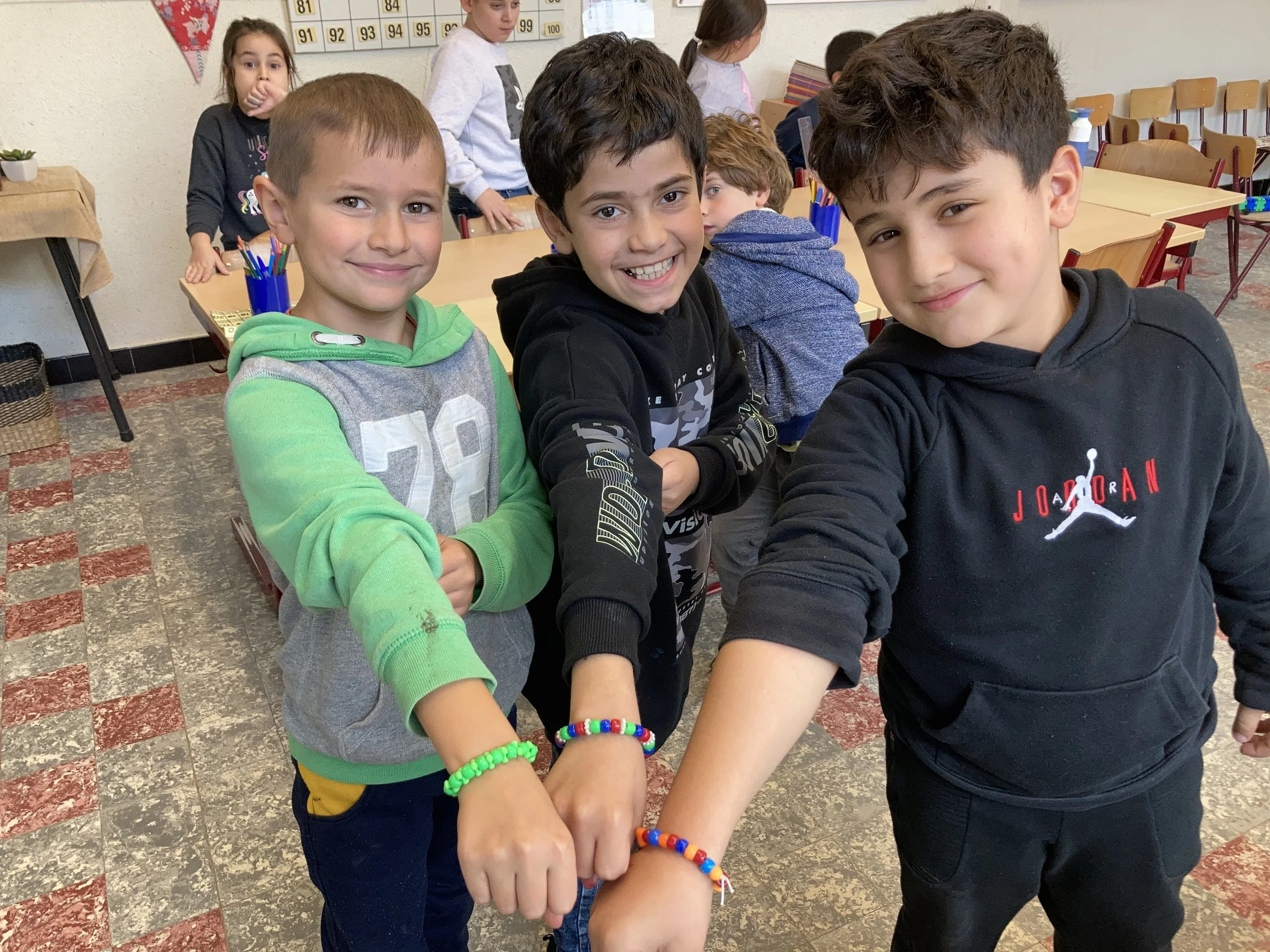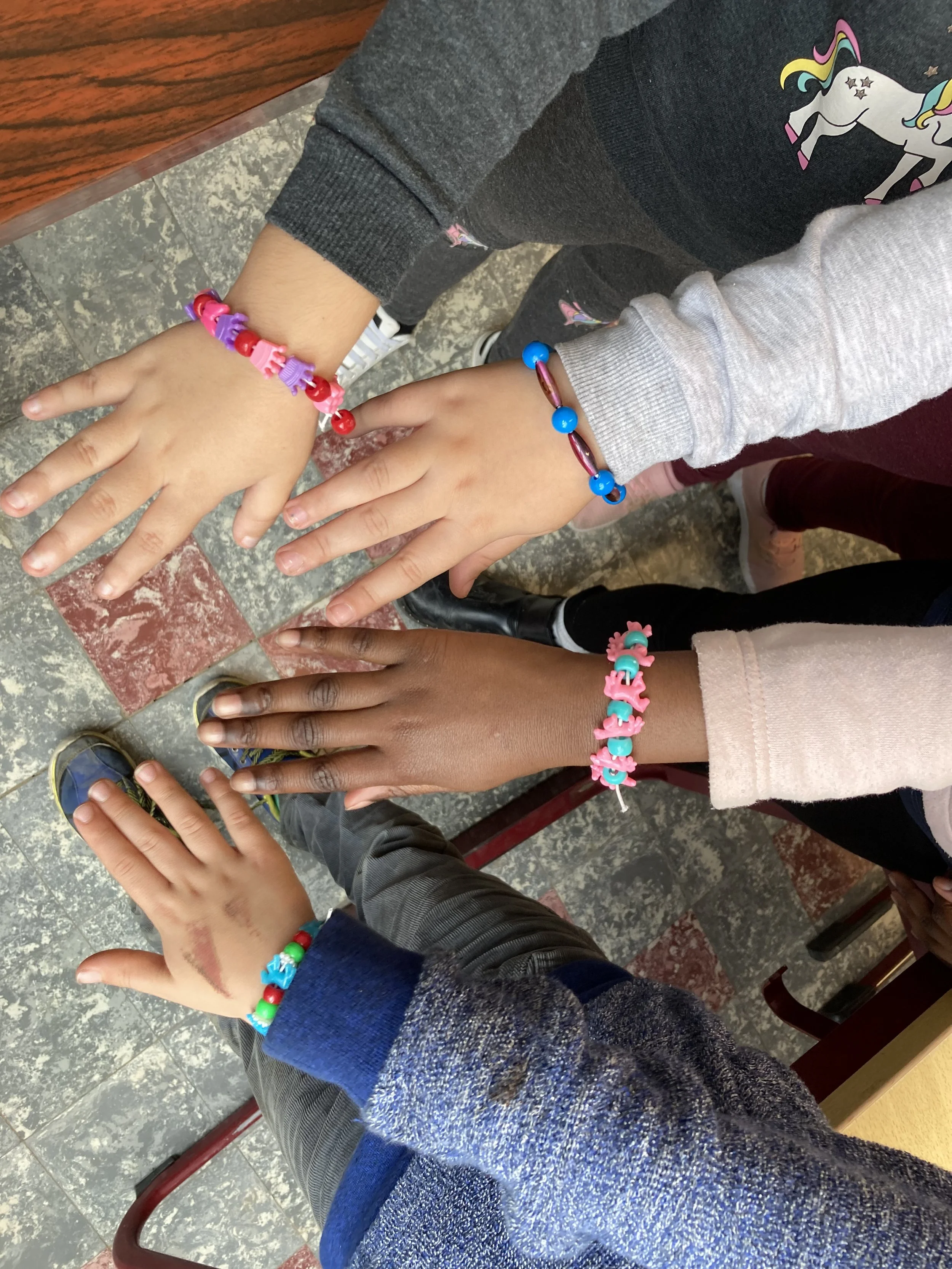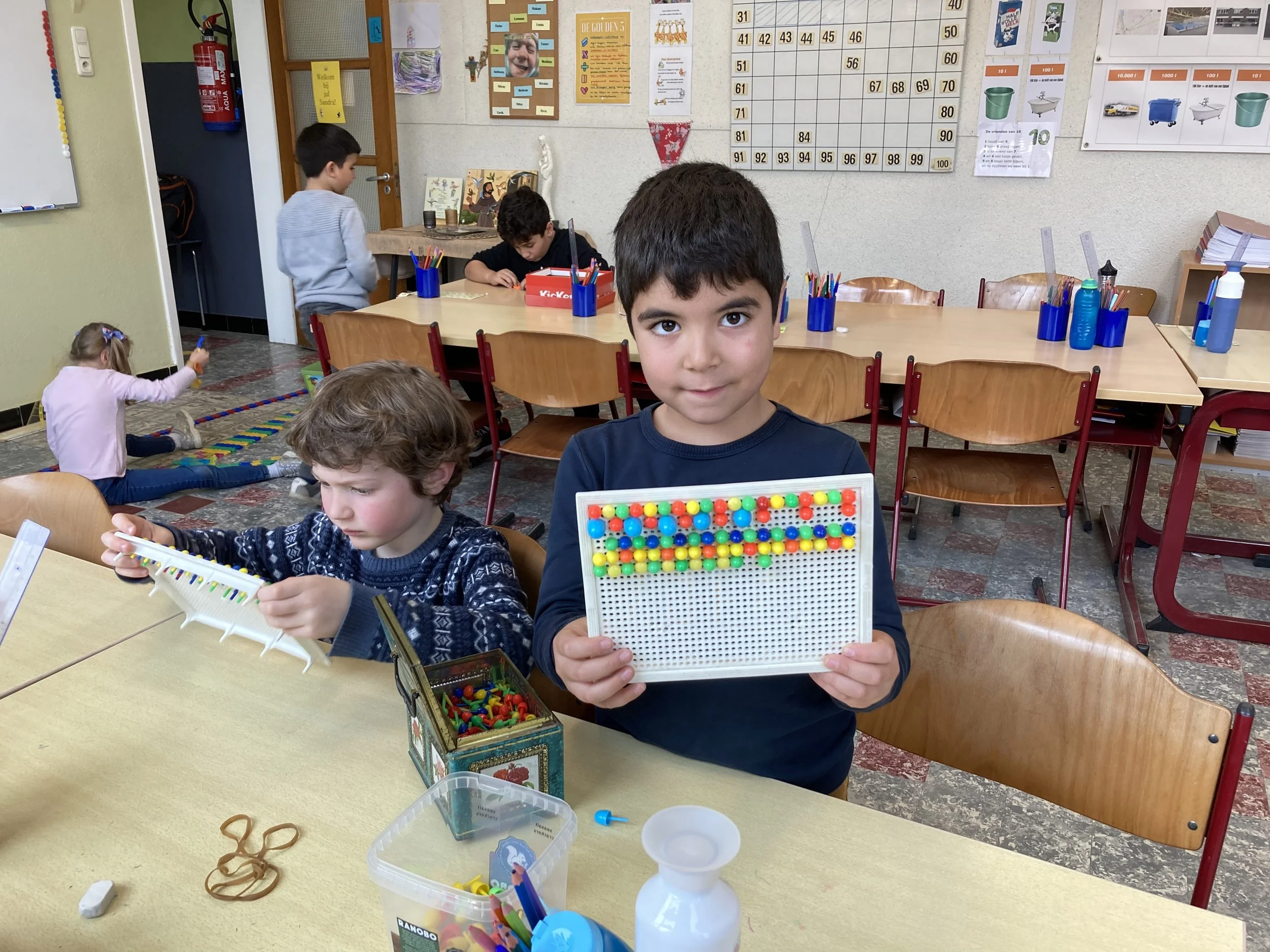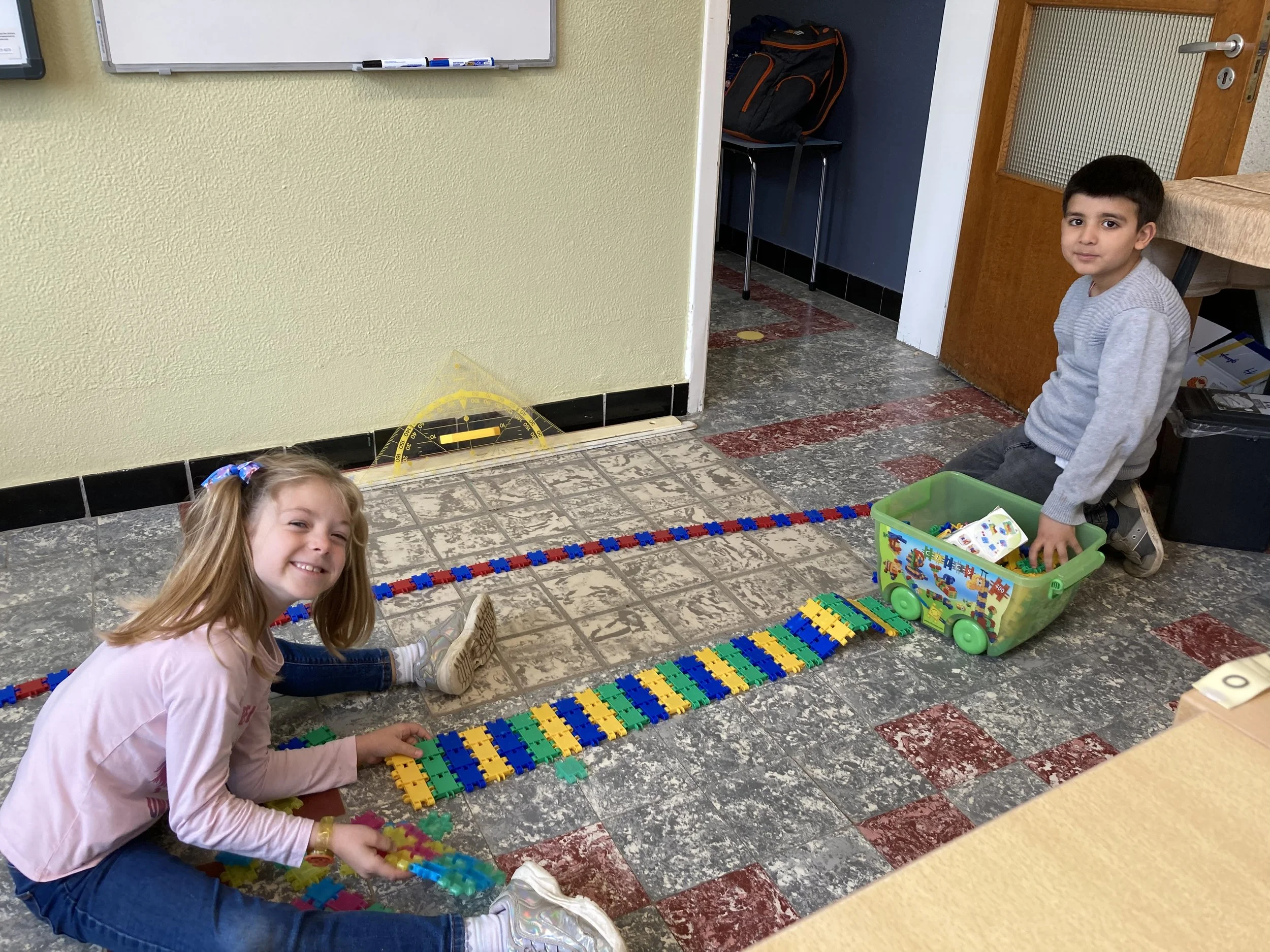 Na het serieuze werk, gingen we aan de slag met verf, stempels, kralen en speelgoed om verder ondergedompeld te worden in de wereld der patronen. Soms waren we verbaasd door de schoonheid ervan. Maar op andere momenten waren we blij met wat extra hulp van een klasgenootje.