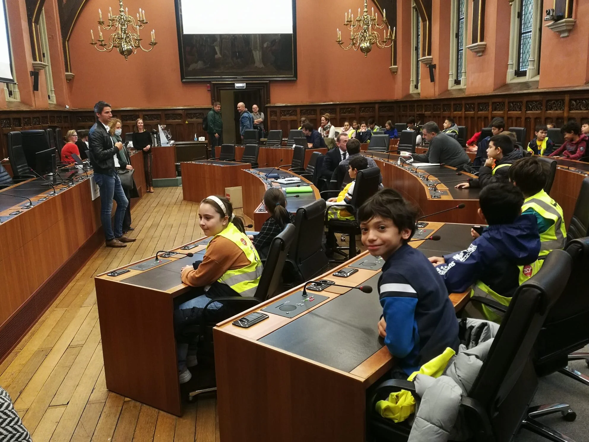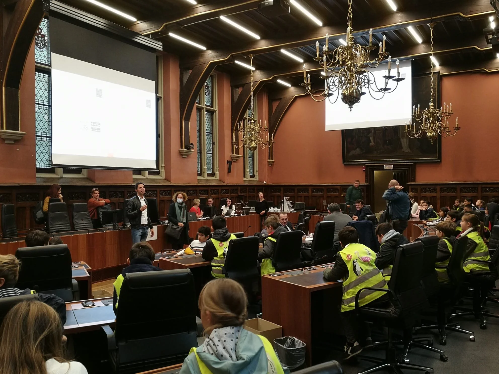 Vandaag mocht het vierde leerjaar op bezoek in het stadhuis van Gent. Samen met de gids gingen we op ontdekking in het prachtige gebouw. We kwamen zelfs de burgemeester tegen!