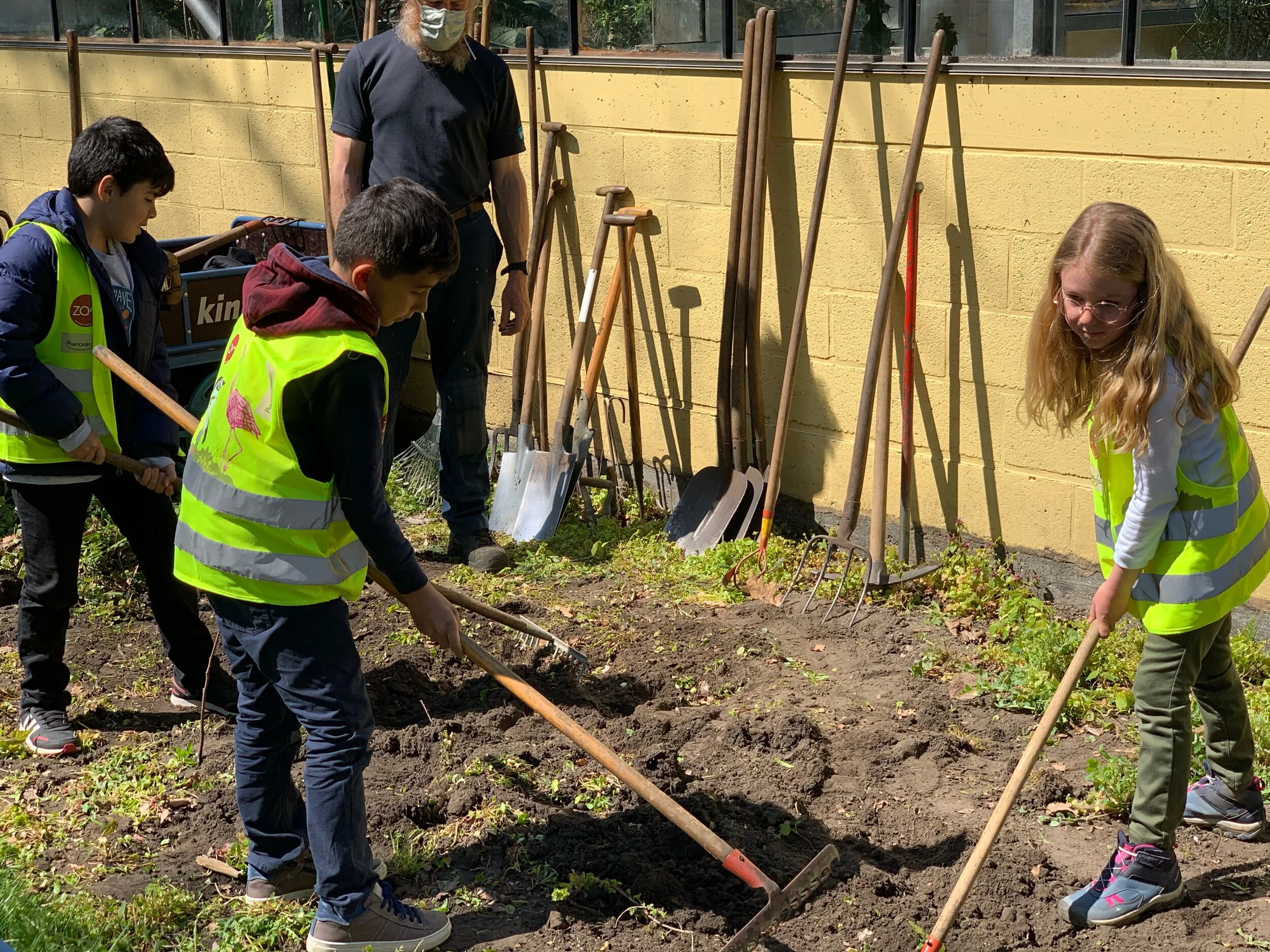 Na een intensieve wandeltocht kwamen we aan op onze bestemming. Vol enthousiasme begonnen we aan een leerrijke speurtocht tussen de verschillende kruiden. We ontdekten een grote variëteit door heel aandachtig te kijken, te voelen, te ruiken... Ook de verschillende insecten ontsnapten niet aan ons oog. De tuinman stelde het tuingereedschap voor en we leerden de kneepjes van het vak.