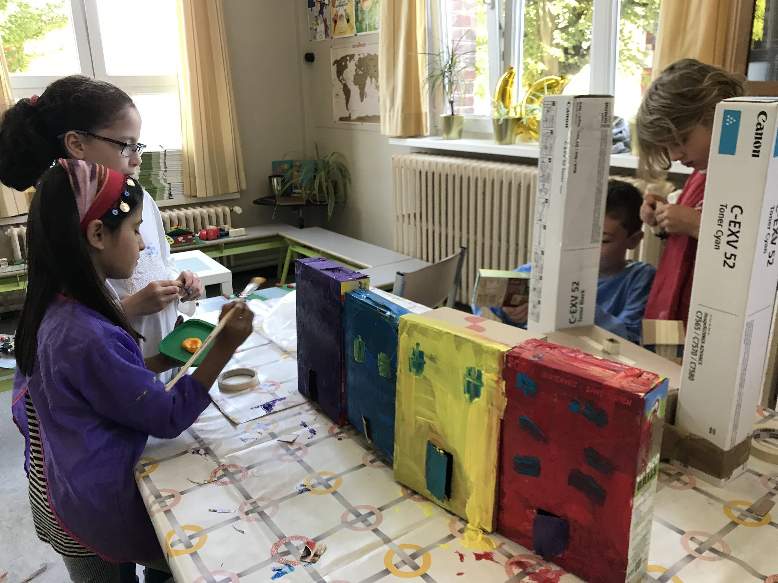 Binnen ons thema: ‘Mijn buurt, mijn land… Héél interessant!’ bouwen we een grote stad in onze klas. We lieten ons inspireren door de prachtige gebouwen uit de Gentse binnenstad en gingen daarna aan de slag met oud karton, kleefband, verf en een gezonde dosis creativiteit!