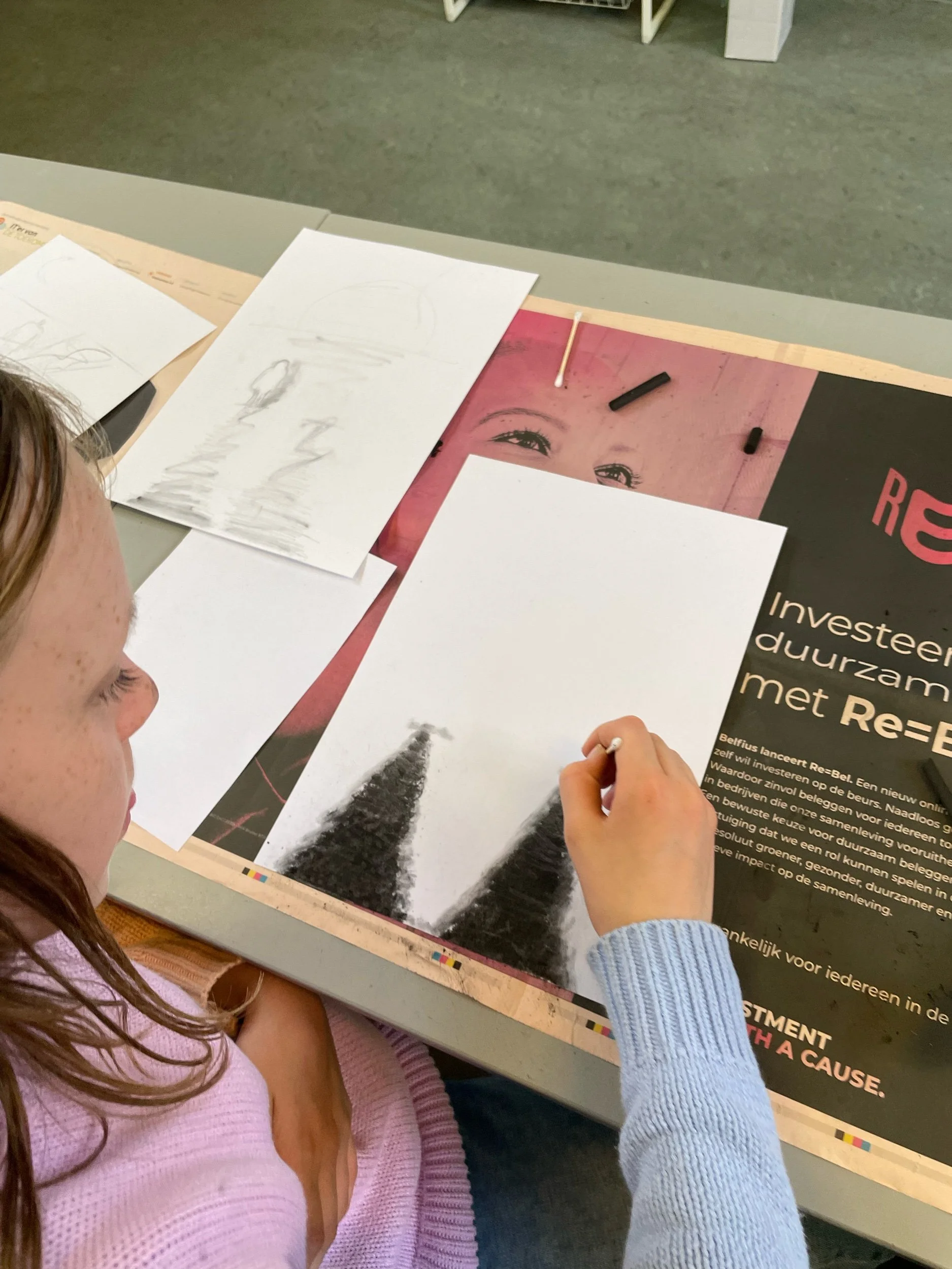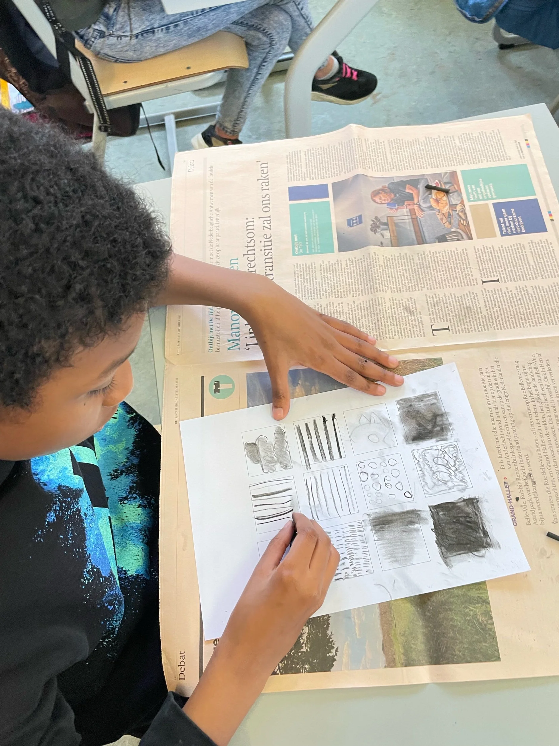 wij leerden werken met het materiaal houtskool. Eerst deden we een materiaalstudie en daarna gingen we zelf creatief aan de slag!